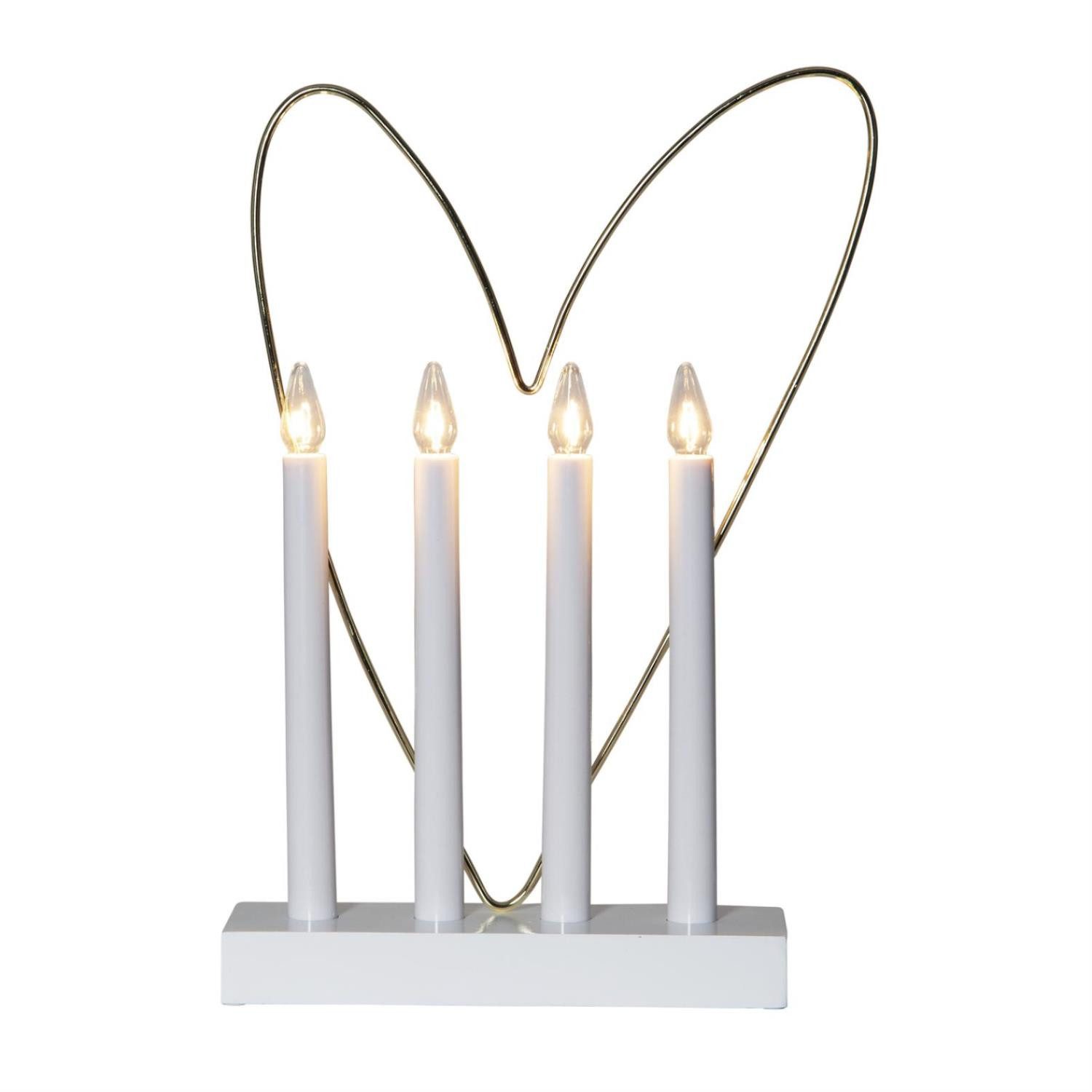 Fensterleuchter Glossy Herz - Kerzenleuchter - 4flammig - E10 Glühlampen - H: 35cm - weiß/gold