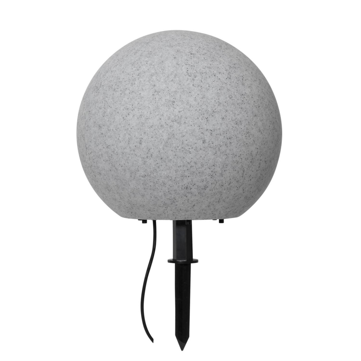 Gartenkugel STONE - Erdspieß - H: 38cm - D: 40cm - Fassung E27 - Kabel - Außen - grau