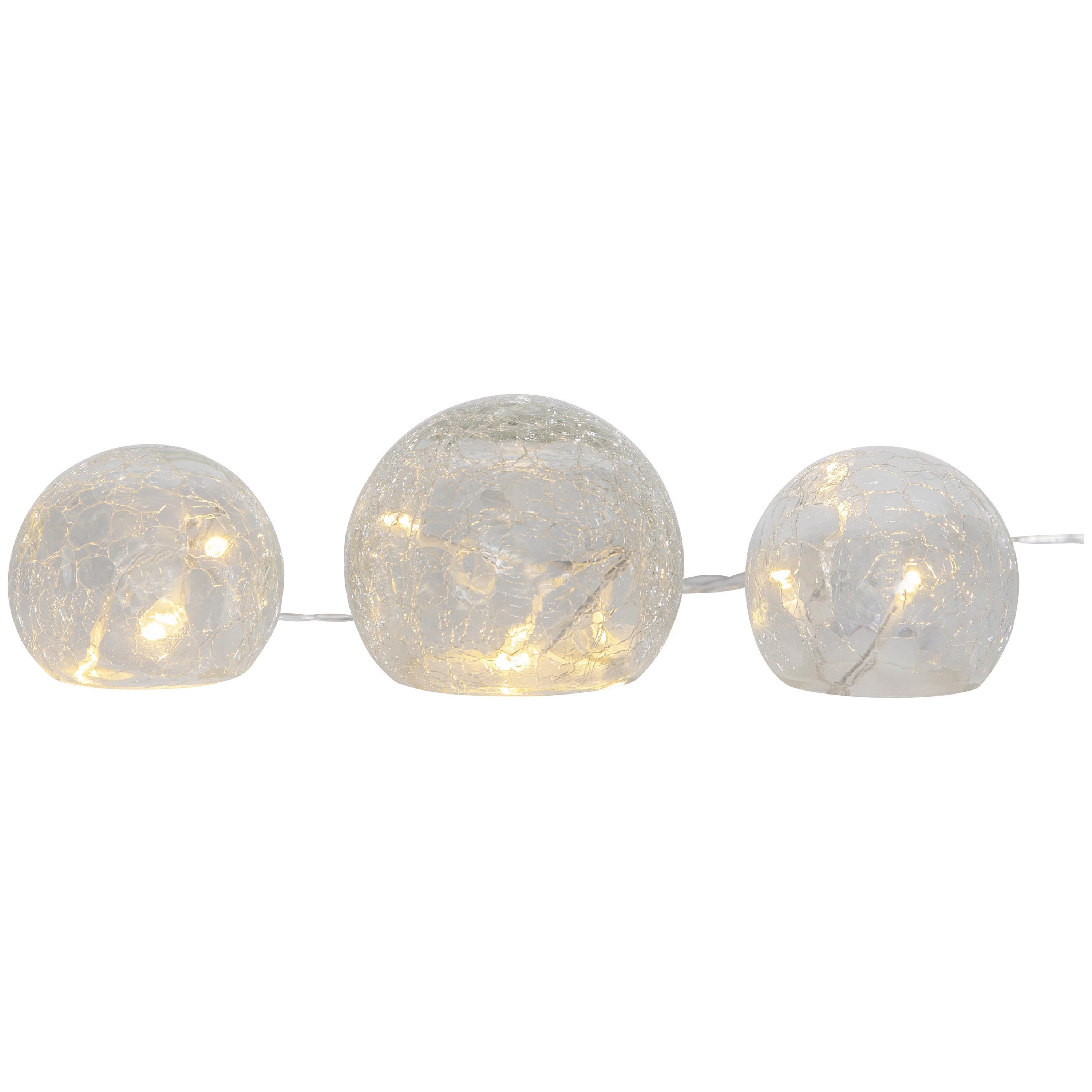 Die drei Glaskugeln sind durch ein Kabel miteinander verbunden und schaffen ein schönes Licht-Ensemble auf der festlich geschmückten Tafel.