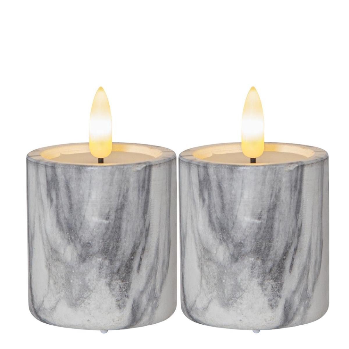 LED Stumpenkerzen Flamme - Marmoroptik - Zement/Wachs - realistische Flamme - Timer - 9cm - 2er Set