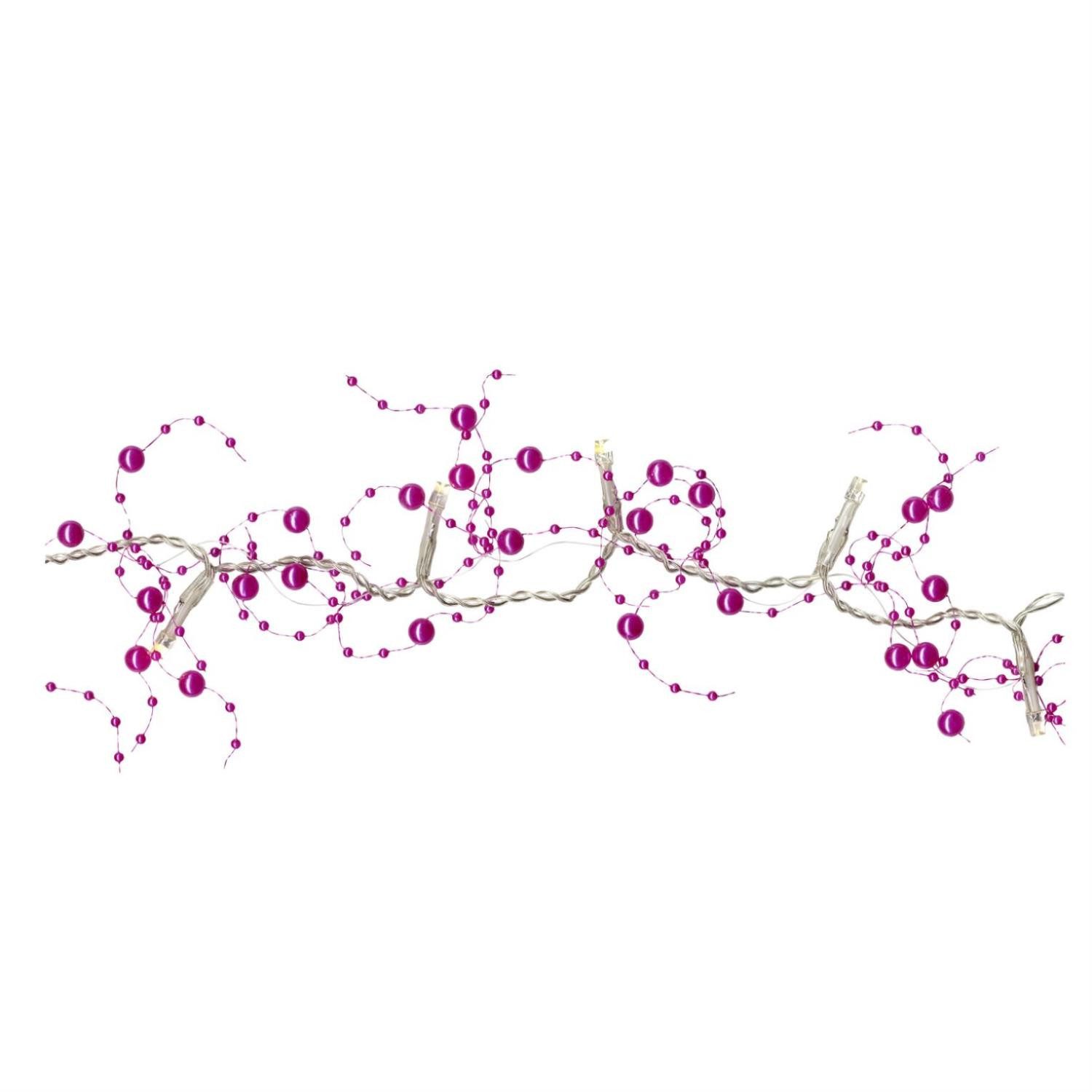 Wunderschöne romantische Lichterkette mit 20 warmweißen LED und kleinen pinken Perlen, die rings um das Kabel angebracht sind. Sie ist ideal zur Dekoration von Tischen, Beistelltischen, Kommoden. Auch um den Spiegel oder um einen Bilderrahmen herum wirkt sie toll und verzaubert Deine Wohnung.
