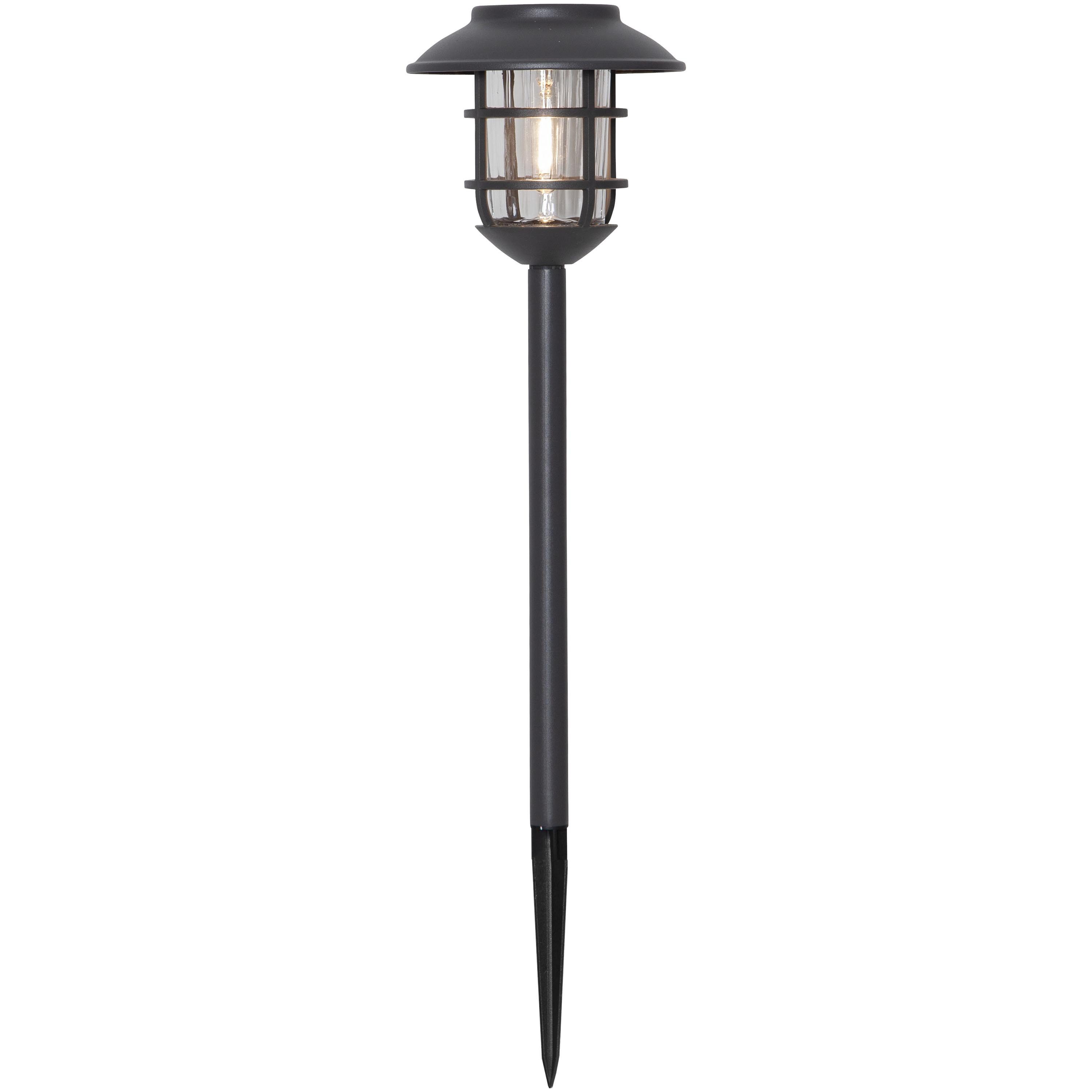 Die LED-Solarlampe FILIPPA besteht aus einem dunkelgrauem Erdspieß aus Edelstahl mit klassischem Laternen-Kopf. Die integrierte LED ist durch das klare Glas sichtbar und spendet ein angenehmes warmweißes Licht, was eine gemütliche Atmosphäre schafft. Die auf der Laterne angebrachten Solarpanels sammeln tagsüber Energie und speichern diese in einer Batterie. Sobald es dunkel wird schaltet sich die Pollerleuchte durch den Dämmerungssensor automatisch ein und sorgt mit 10 Lumen für eine schöne Beleuchtung im Freien. Durch den praktischen Erdspieß und die Maße 17 x 50 cm eignet sich die Solarleuchte ideal zur stilvollen Beleuchtung im Außenbereich, beispielsweise am Gartenweg, der Terrasse oder im Blumenbeet. Die wiederaufladbare Batterie ist im Lieferumfang enthalten.