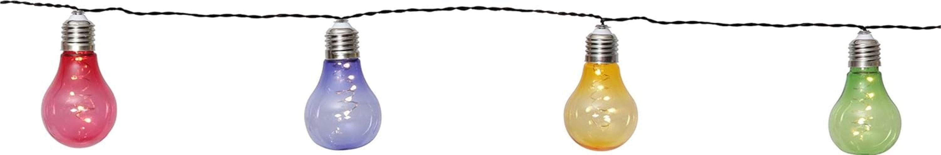 Unsere LED Lichterkette ,Glow' mit insgesamt 10 bunten Glühbirnen und Dämmerungssensor ist die ideale Wahl, um deinen Outdoor-Bereich dekorativ zu beleuchten. Die Glühbirnen mit ihrer klassischen Form bringen lebendigen Retro-Charme in deinen Garten, auf den Balkon oder die Terrasse und schaffen durch ihr mehrfarbiges Licht eine fröhliche Atmosphäre, die zum feiern einlädt.