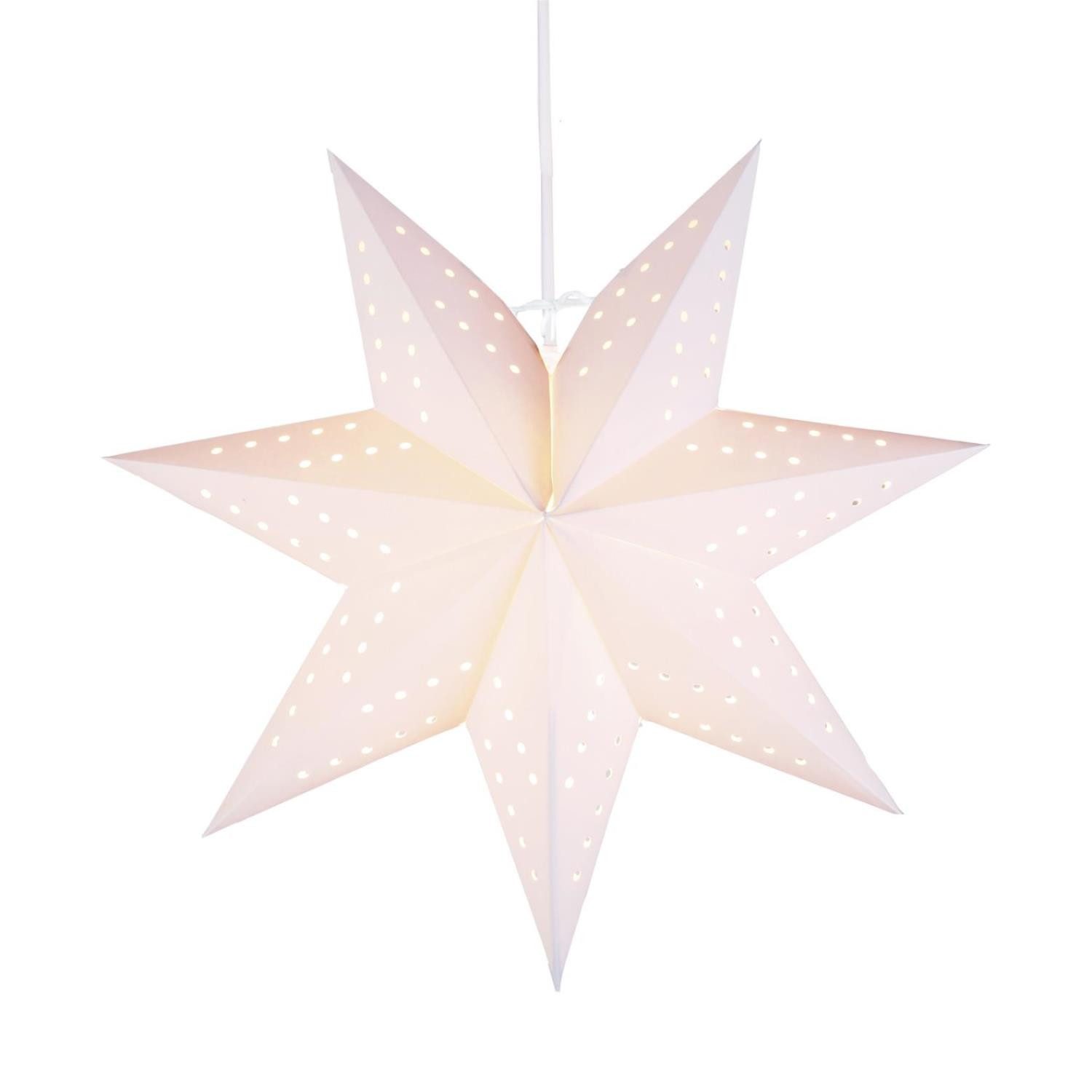 Papierstern Bobo - hängend - 7-zackig - D: 34cm - inkl. E14 Fassung u. Kabel - weiß