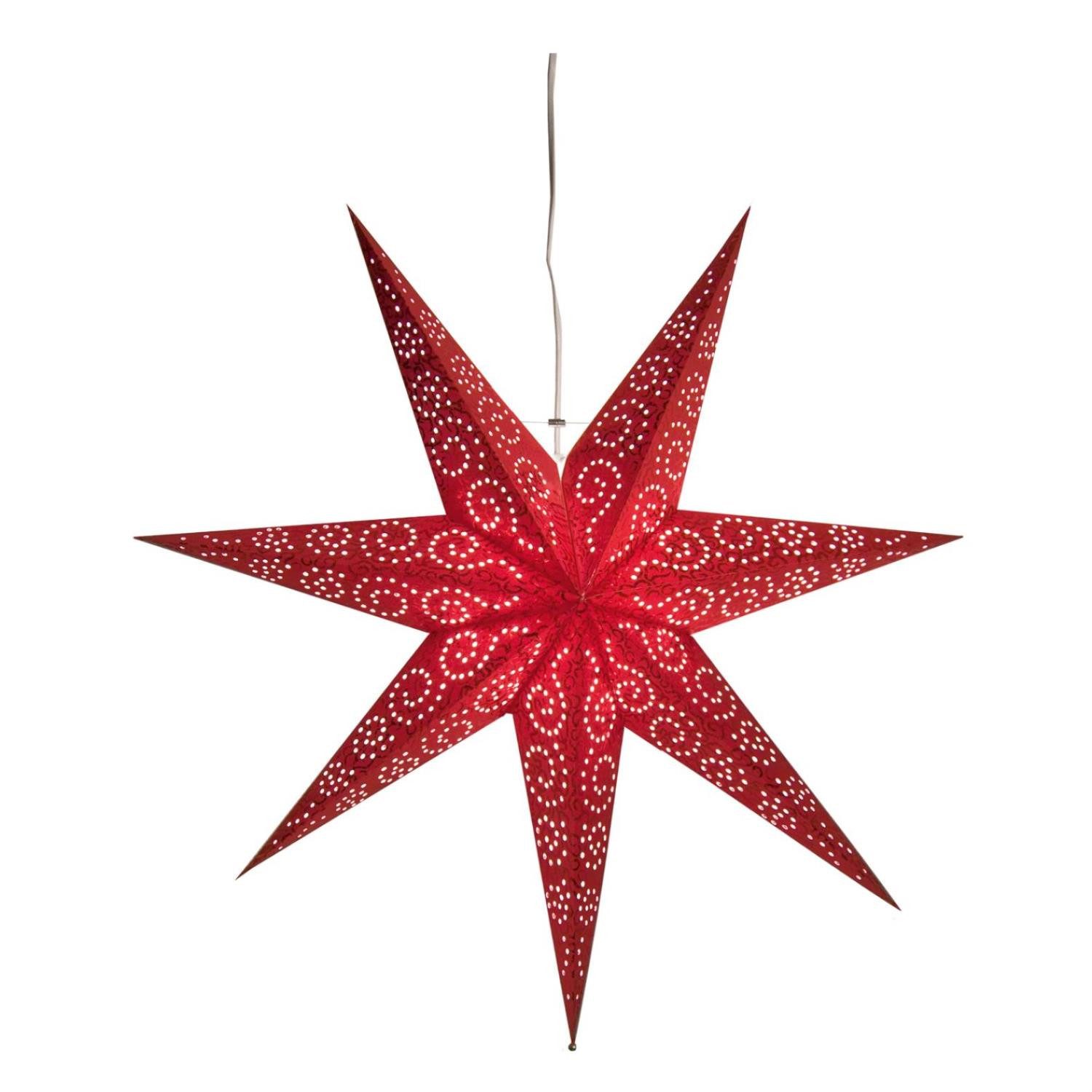 Papierstern Antique - hängend - 7-zackig - D: 60cm - inkl. E14 Fassung u. Kabel - rot