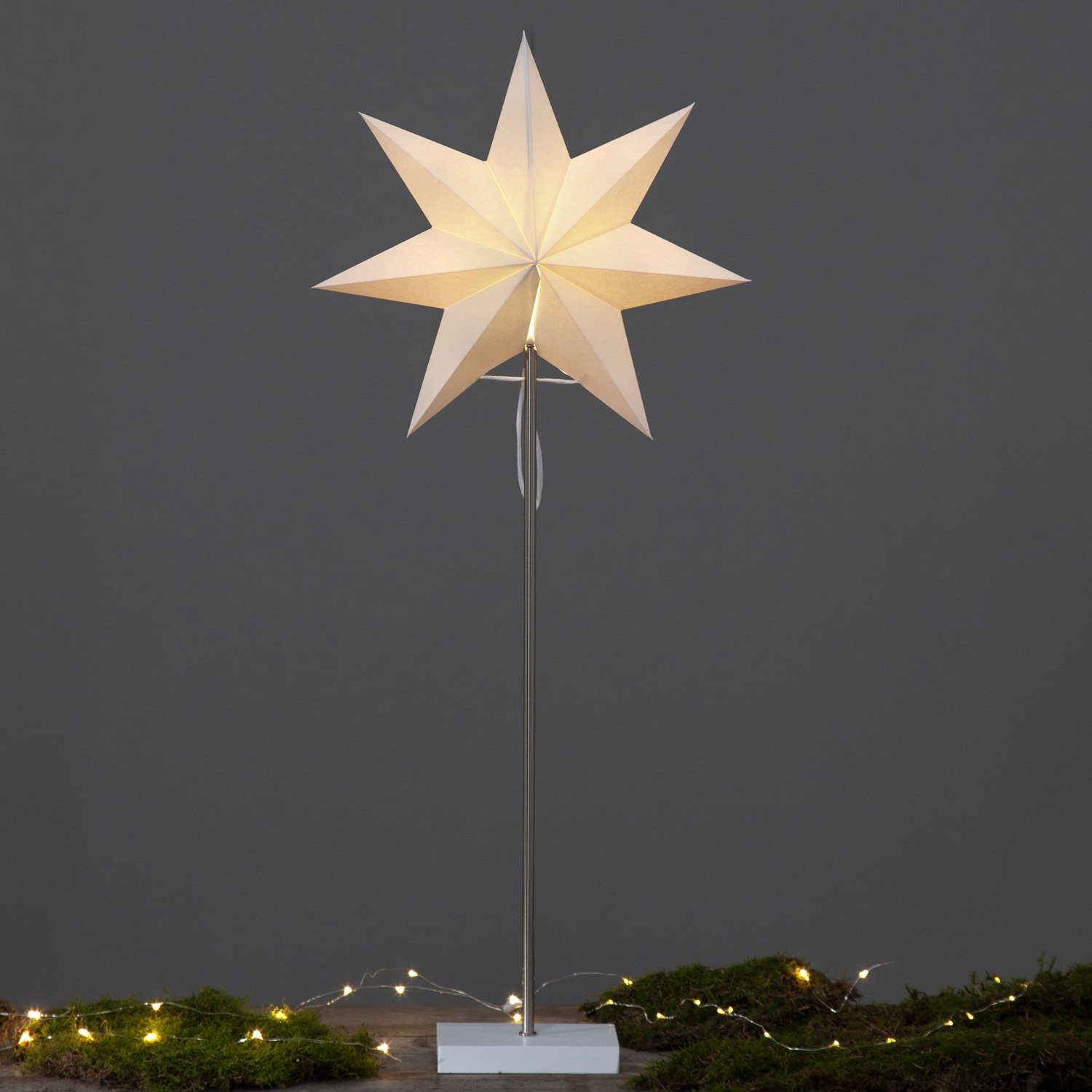 Papierstern Totto - stehend - 7-zackig - H: 80cm - inkl. E14 Fassung u. Kabel - weiß