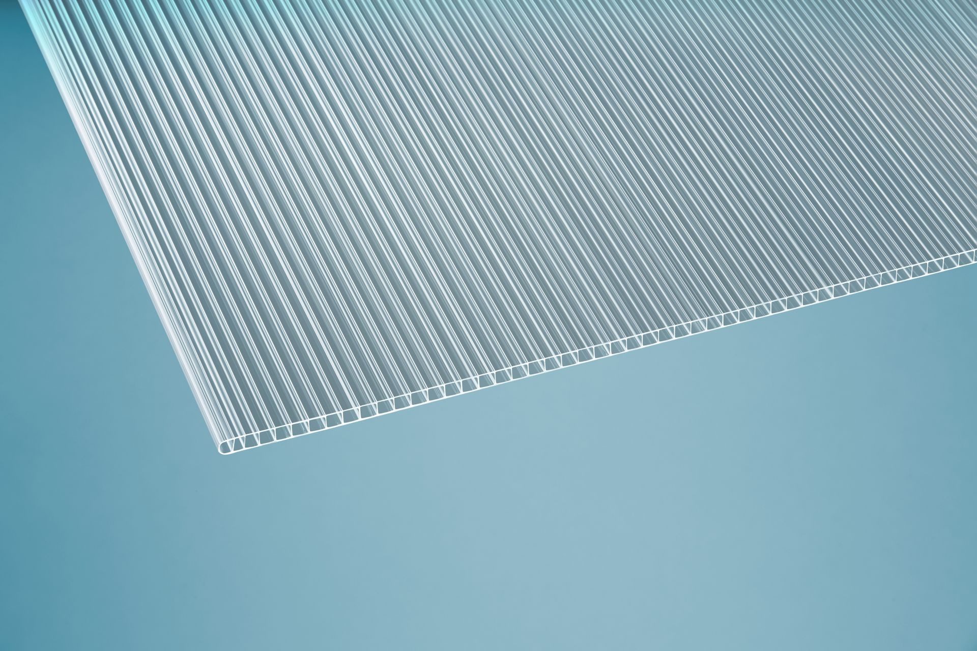 Produktinformationen "Polycarbonat Stegplatten klar 10 mm" Breite: 1050 mm Höhe: 10 mm Gewicht: 3.6 kg Polycarbonat Hohlkammerplatten: Gemacht für robuste Bedachungen Ideal für Dacheindeckungen und Wandverkleidungen geeignet. Sehr robustes und äußerst schlagfestes Material. Bruchsicher, hagelfest und problemlos zu verarbeiten. Optische Akzente setzen und gleichzeitig vor Wind und Wetter schützen: Unsere transparenten Polycarbonat Hohlkammerplatten erfüllen all diese Anforderungen. Die leichten und handlichen Platten eignen sich für Verglasungen oder Wind- und Sichtschutz. Gleichzeitig haben Sie alle kreativen Möglichkeiten für eine individuelle Gestaltung im Innenbereich. Polycarbonat (PC) Höchste Schlag- und Hagelfestigkeit Schnelle und einfache Montage Hohe UV-und Witterungsbeständigkeit Sehr gute Dämmeigenschaften Langlebig dank hochwertiger Materialien kalt biegbar Sehr gute Isolierungseigenschaften gutes Pflanzenwachstum 10 Jahre Herstellergarantie (siehe Reiter "Garantie") Diese Stegplatten sind schlagzähe und energiesparende Hohlkammerplatten aus Polycarbonat hergestellt für Verglasungen. Eine spezielle Oberflächenvergütung sorgt für nahezu perfekten Schutz vor der zersetzenden Wirkung von UV-Strahlen. Entscheiden Sie sich für Polycarbonat Hohlkammerplatten, wenn Sie vor allem robuste und haltbare Platten mit sehr guter Wärmeisolierung suchen. Hohlkammerplatten bringen Ihre Dächer in Top-Form Langlebig, transparent, einfach zu verarbeiten, schlagfest und dabei UV- und witterungsbeständig: Gerade als Bedachungsmaterial punktet Polycarbonat mit zahlreichen Materialvorteilen. Mit unseren Hohlkammerplatten aus Polycarbonat (PC) können Sie kreative Gestaltungen rund um Ihr Zuhause sicher und einfach verwirklichen. Ganz gleich ob Terrassenüberdachung, schützendes Carport, Gartenhaus oder Hauseingang, mit den Hohlkammerplatten von Gutta setzen Sie optisch und ästhetisch überzeugende Akzente. Einsatzbereiche Dacheindeckungen Wandverkleidungen Lichtbänder Terrassenüberdachungen Pergolen Carports Gewächshäuser Frühbeete Unterstände Scheiben und vieles mehr Technische Daten: Rohstoffe: Polycarbonat (PC) Material- / Wandstärke: 10,00 mm Spezifische Dichte: 1,20 g/cm² Farben: Klar Temperaturbeständigkeit: - 40 bis + 120 °C Длина: 2.000 - 6.000 mm Breite: 1.050 mm Gewicht: 1,70 kg/m² U-Wert: 3,02 W/m² K Lichtdurchlässigkeit: Klar ca. 80 % Brandverhalten: B,s1,d0 (nach EN 13501) Hohlkammerbreite: ~ 10,70 mm Linearer Wärmeausdehnungs-koeffizent: 0,065 mm/m °C Minimal zulässiger Kaltbiegeradius: 1.750 mm, die Biegung muss in Richtung der Stege liegen, nicht quer (Knickgefahr!) Schalldämmaß: 19,00 dB Zugfestigkeit: 6 Bruchdehnung: > 80% (Bedingung: 10mm/min) Schlagzähigkeit nach Charpy: 40 - 400 J (ISO 6603/1) Wärmedehnung / Kontraktion: 3,00 mm/m Dachneigung: минимум 7° UV-Schutz: Beidseitig