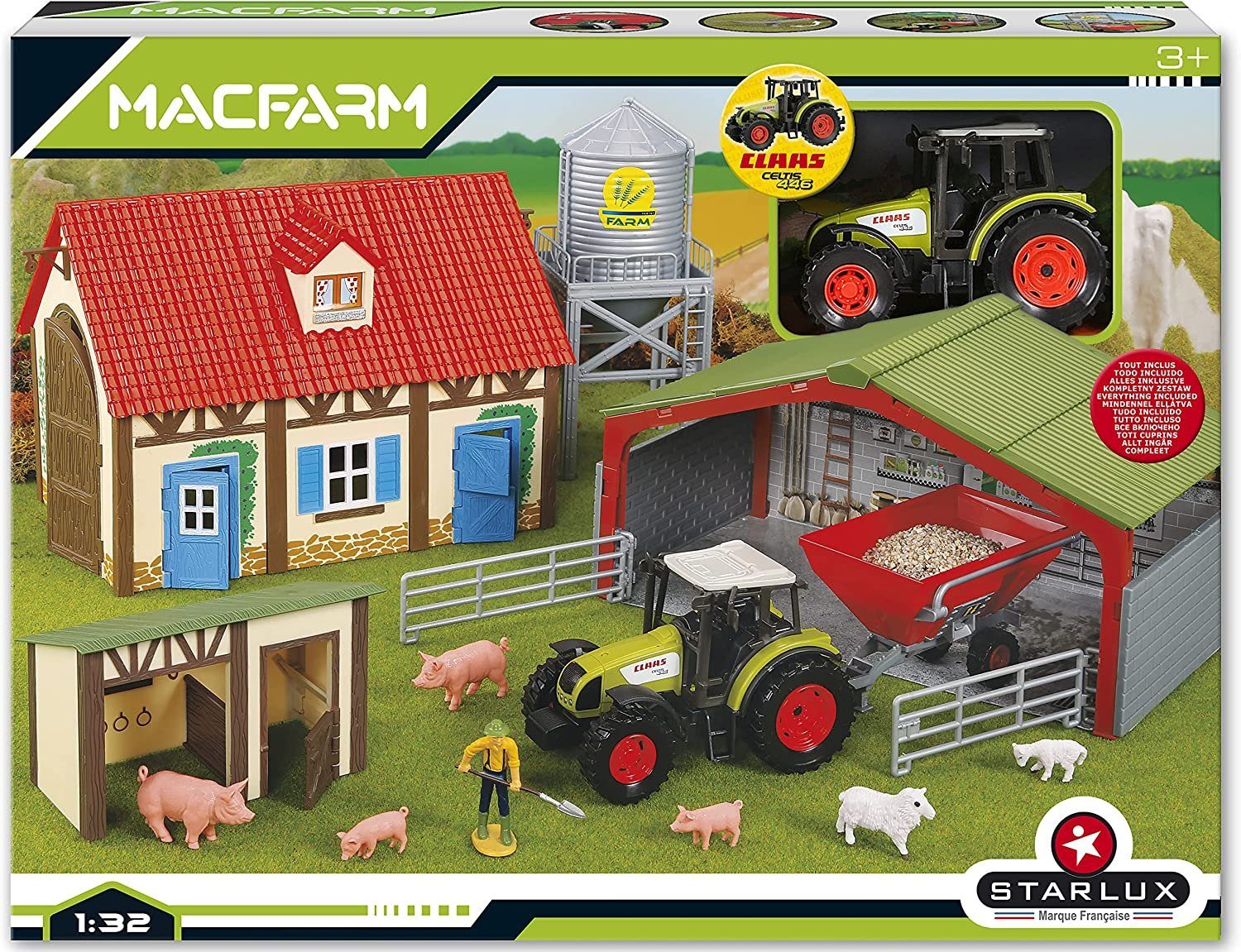 Ausstattung | 1 x Traktor, 1 x Anhänger, 1x Bauernhaus, 1x Schuppen, 1 x Stall, 1 x Kornspeicher (Silo), 6x |