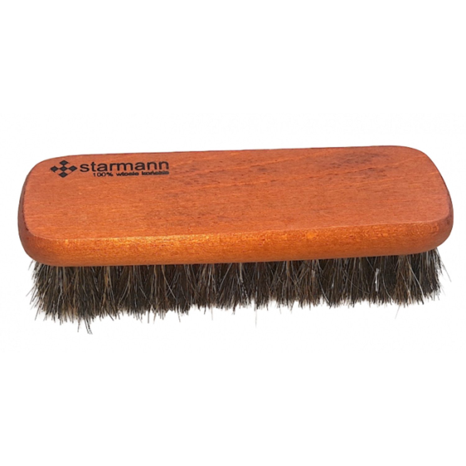 Eine hochwertige Schuhbürste aus lackiertem Buchenholz. Dieses elegante und langlebige Produkt ist ein unverzichtbares Werkzeug für jeden, der das Aussehen und die Haltbarkeit seiner Schuhe schätzt. Die Bürste ist dicht geschöpft mit 100% Rosshaar, das in seiner Fähigkeit, Lederschuhe zu polieren, unübertroffen ist. Rosshaar ist bekannt für seine Weichheit und Langlebigkeit und ermöglicht eine gründliche Reinigung und Politur, ohne das empfindliche Leder Ihrer Schuhe zu beschädigen.