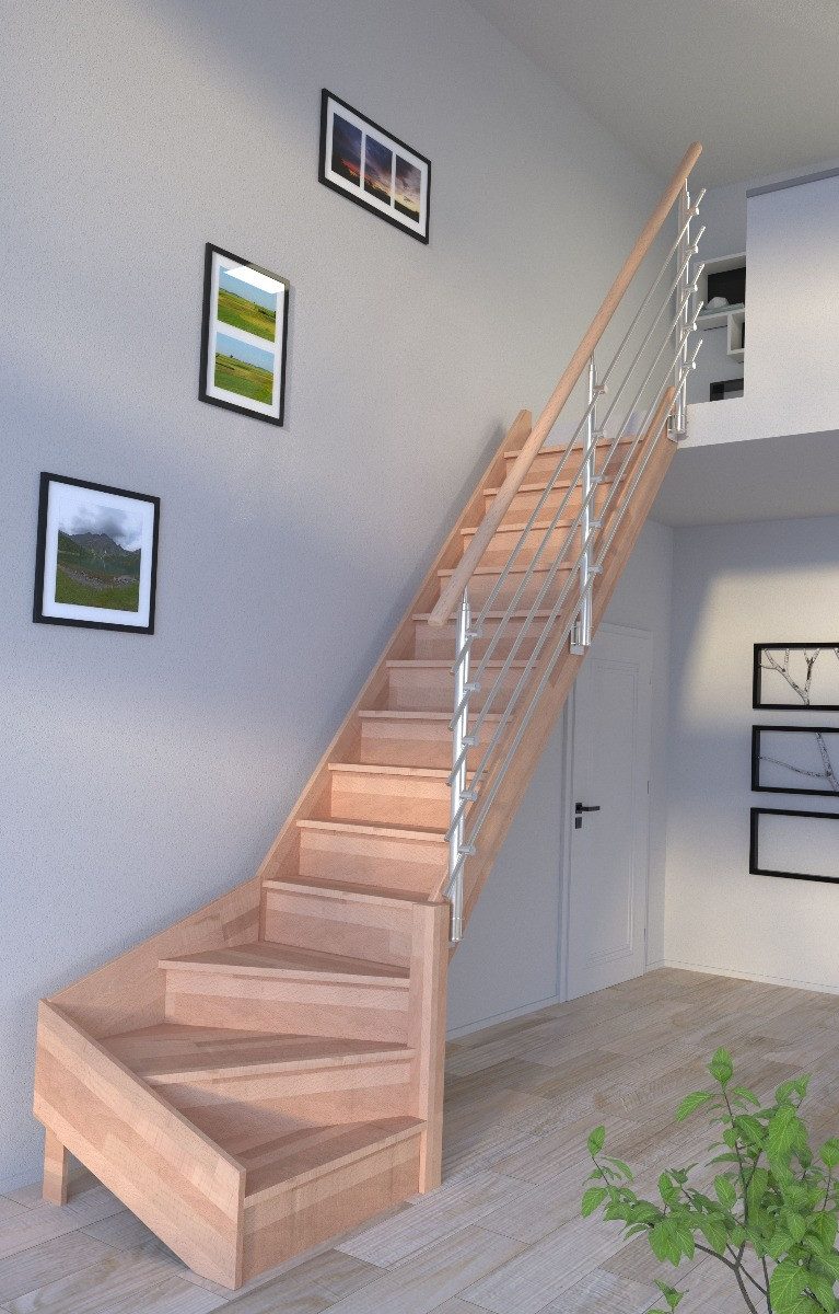 Starwood Raumspartreppe Holztreppe Rhodos in ¼ gewendelter Ausführung rechts-Buche-Design