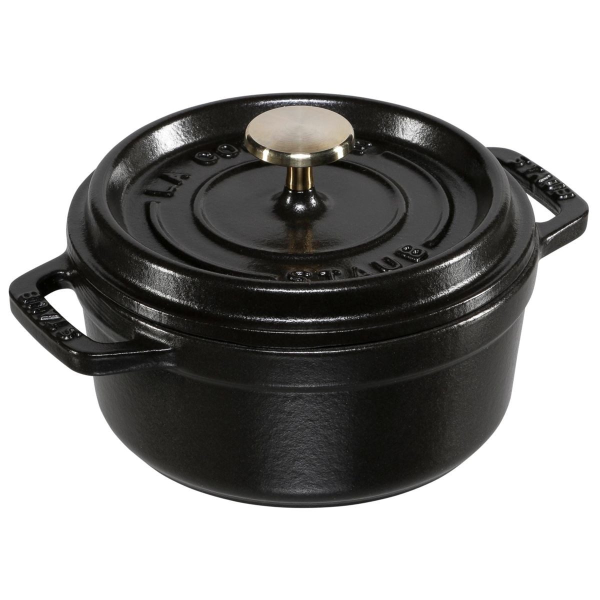 Die runde Cocotte ist ein französischer Schmortopf, in dem vor allem Gerichte wie Ragouts, Gratins, Suppen und Soufflés zubereitet werden. Die Emaillierung fördert den Eigengeschmack der Speisen, so bleibt Gemüse schmackhaft und aromatisch, während Fleisch saftig und zart wird. Mit den Cocottes von Staub gelingen Anfängern und Hobbyköchen Gerichte aus der französischen Küche mit Leichtigkeit. Besonders geeignet für Singles und Paare.