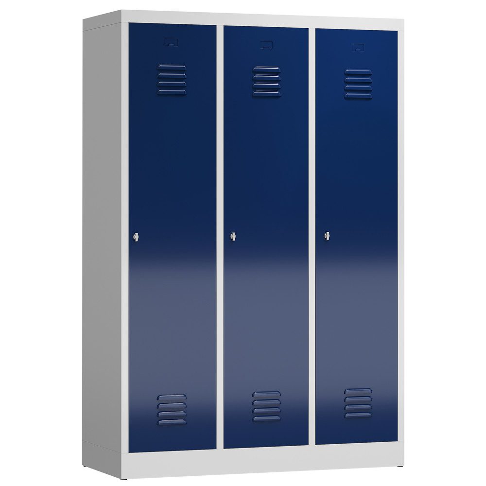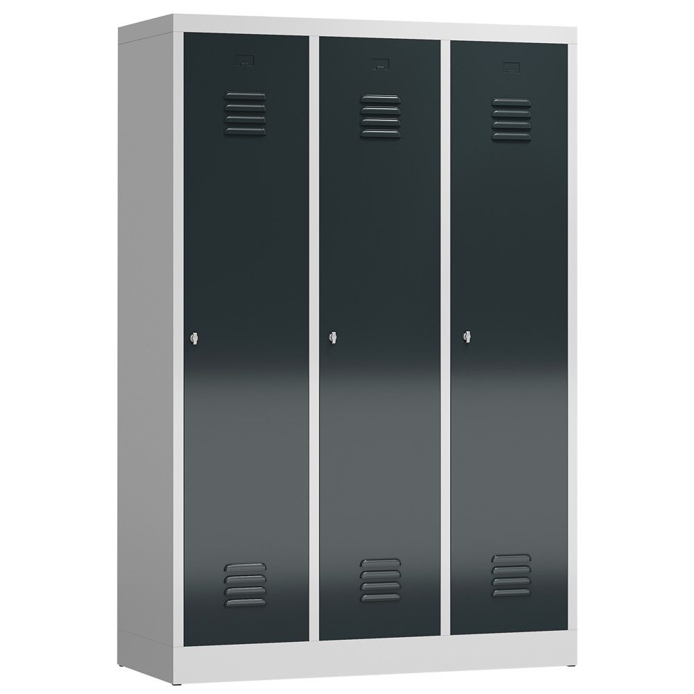 Ausführung | Türen rechts angeschlagen, 3 Personen Spind, extra breit 400mm Abteilbreite |