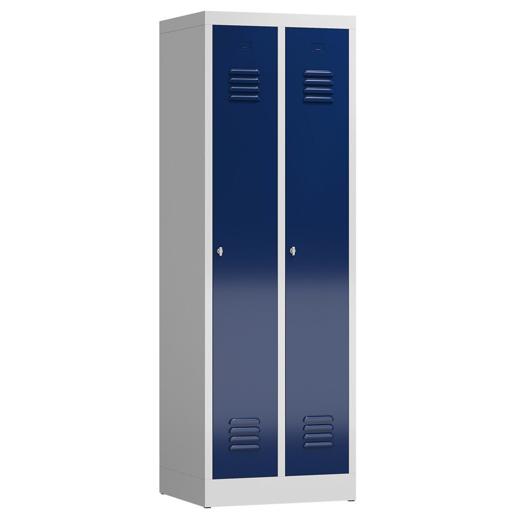 Farbe | Korpus: RAL 7035 Lichtgrau/ Türen: RAL 5010 Enzianblau |