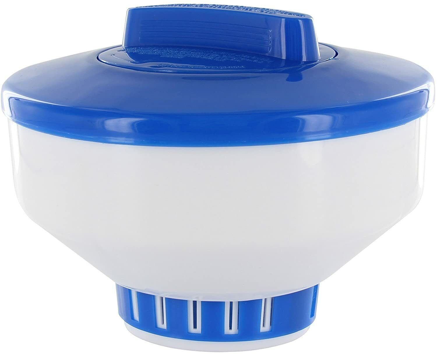 Schwimmender Dosierbehälter zur Verwendung von handelsüblicher Poolchemie in Tablettenform bis zu einer Размер von 20 g. Verstellring zum Dosieren der Chemie serienmäßig.