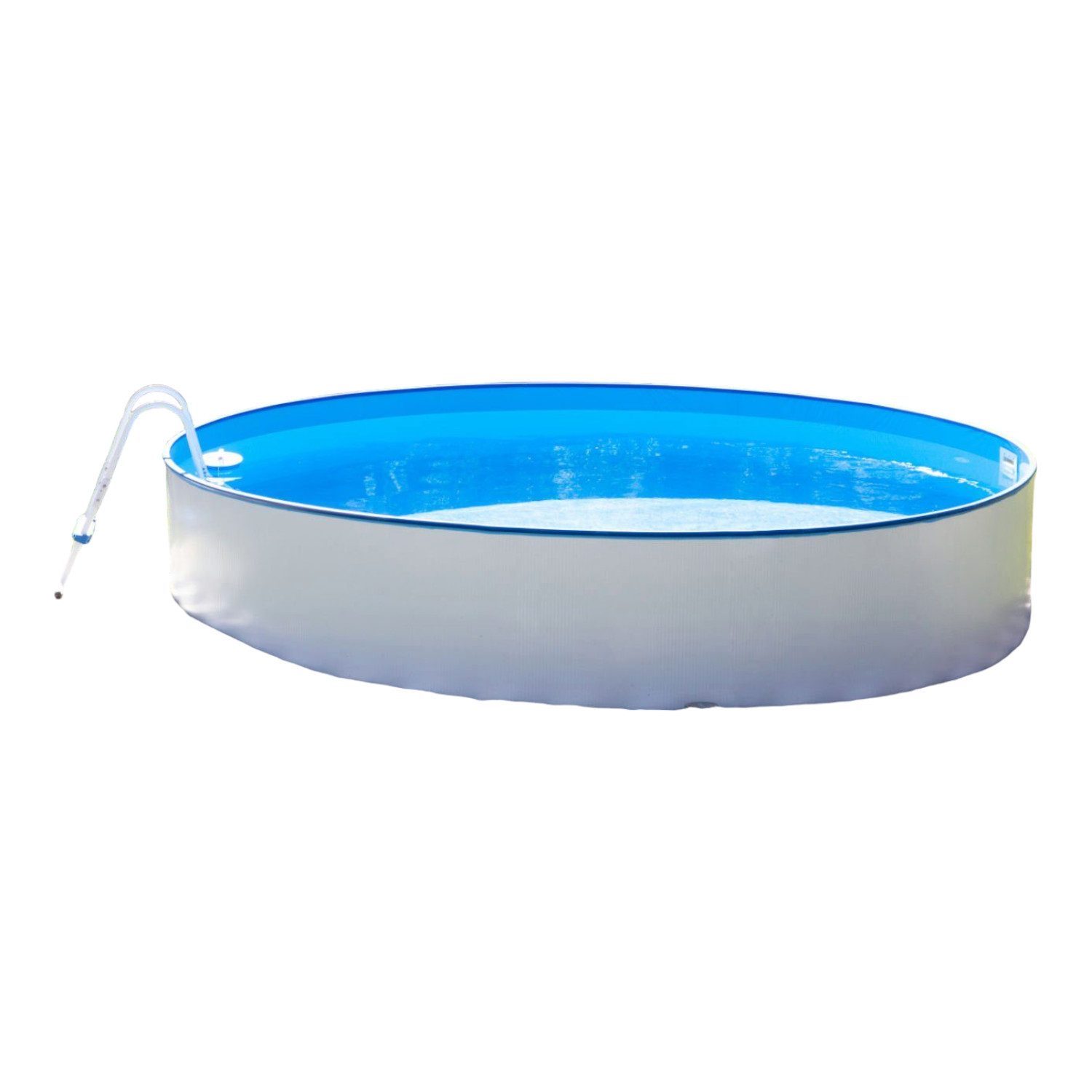 Lieferumfang | Pool Kunststoffhandlauf Kunststoff-Bodenschienen winterfeste Innenfolie Leiter Einbauskimmer und Einströmdüse Skimmer- und Düsenstanzung Anschluss-Schläuche Pool-Plane Montageanleitung |