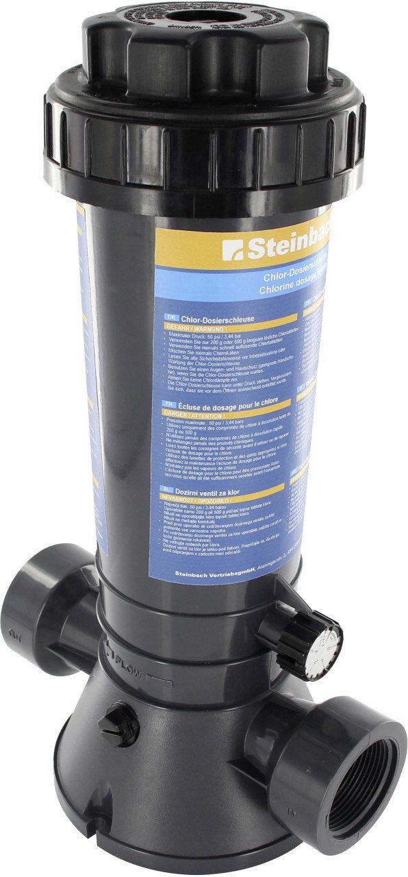 Produktdetails: Stufenlose Dosierung der Poolchemie durch Regulierungsschraube | Kapazität bis zu 7 Stk. 200 g Tabletten | Für Poolgrößen bis zu 95 m³ | Anschluss 1 " Innengewinde | Integriertes Entlüftungsventil |