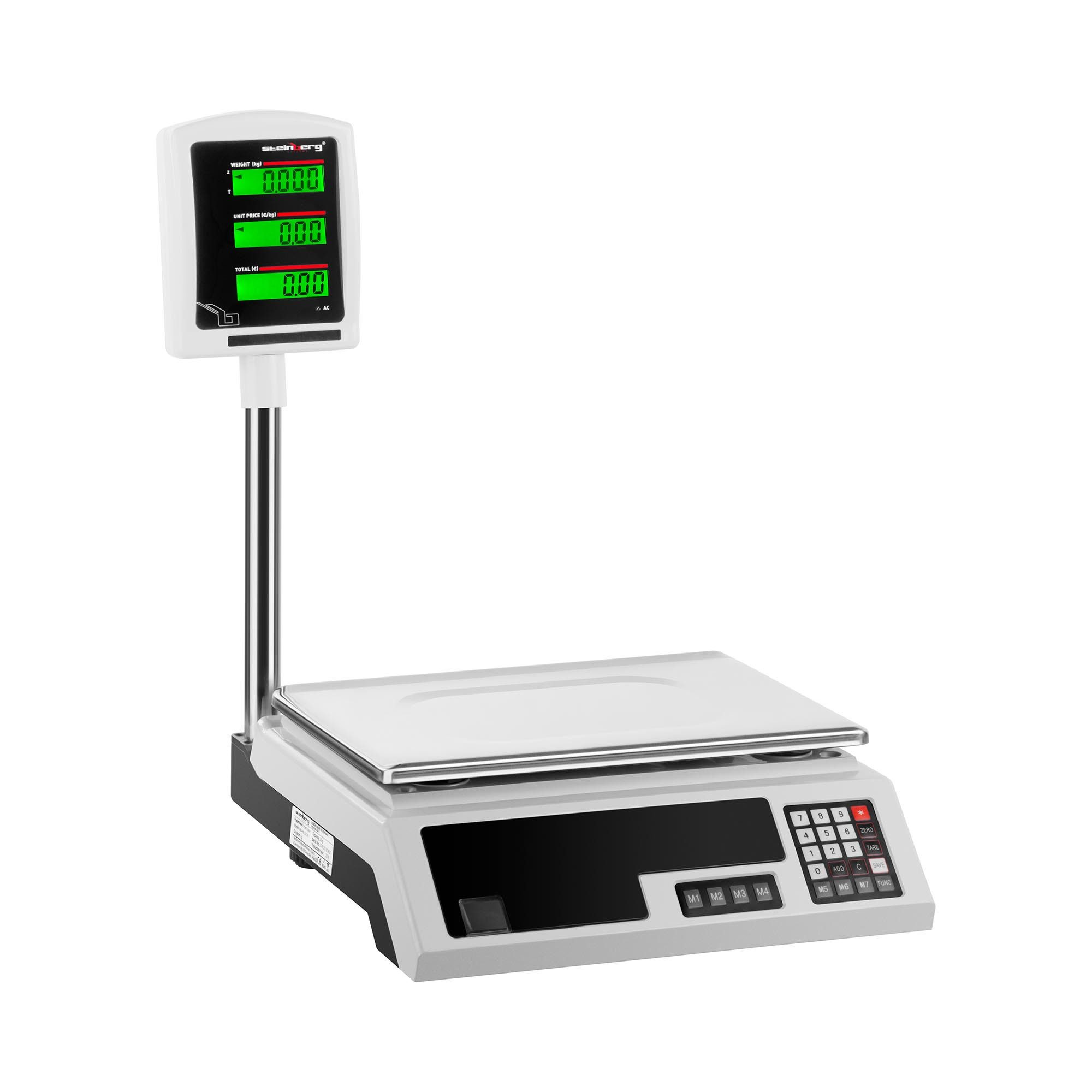 Die Skala der Kontrollwaage zeigt die Ergebnisse direkt an, auch beim Назадstellen auf Null reagiert das Display sofort. Die Waage verfügt über zwei übersichtliche, erhöhte LCD-Anzeigen. Das Wiegeergebnis, der Stückpreis und die Gesamtkosten können angezeigt werden. Beide Displays bieten dank der Hintergrundbeleuchtung ein komfortables Arbeiten auch bei dunklen Einsatzorten.