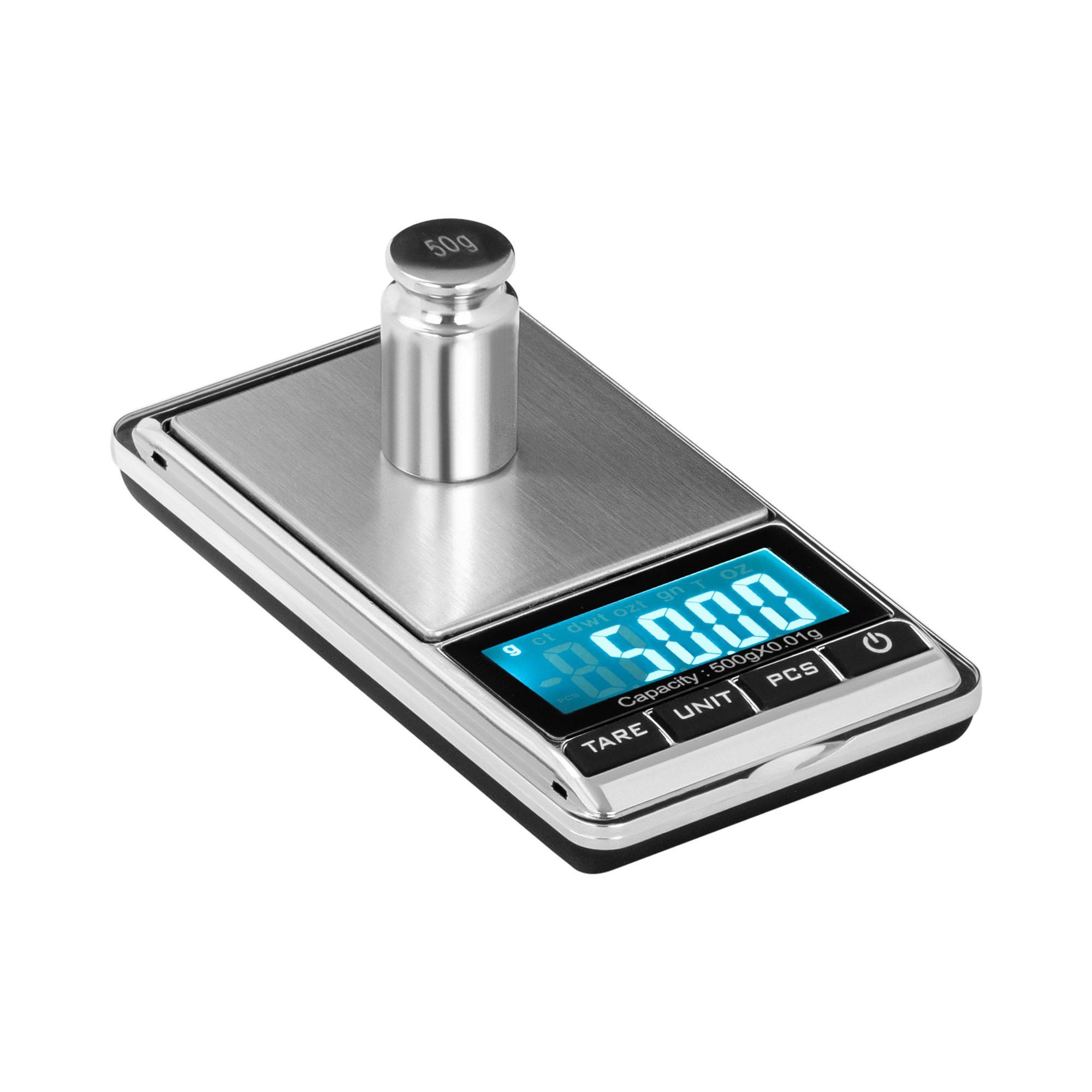 Neben den zahlreichen Einheiten bietet die Feinwaage vielfältige Funktionen, zu denen neben Nullieren, Selbstkalibrieren, Tarieren, Einheitenwechsel und automatischer Abschaltung auch eine Funktion zum Zählen einzelner Gegenstände zählt. Die 62 x 54 mm große Wiegefläche besteht aus hochwertigem Edelstahl, ist leicht zu reinigen und in Kombination mit dem Gehäuse aus ABS-Kunststoff besonders langlebig.