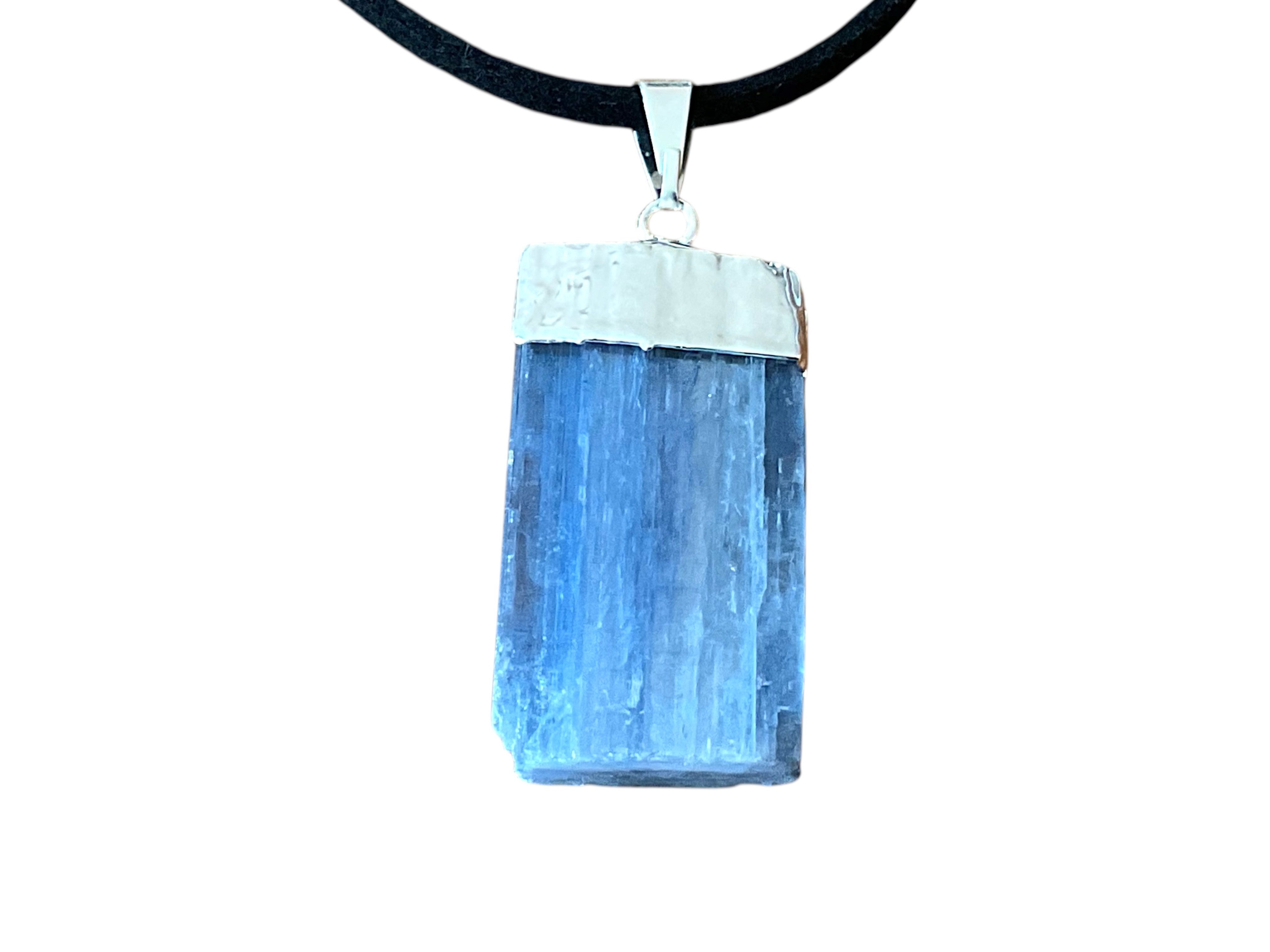 - Kyanit wird auch Cyanit, Disthen oder Inselsilikat genannt.- Lieferung mit 50 cm Lederband, fertig verpackt in einem Samtsäckchen