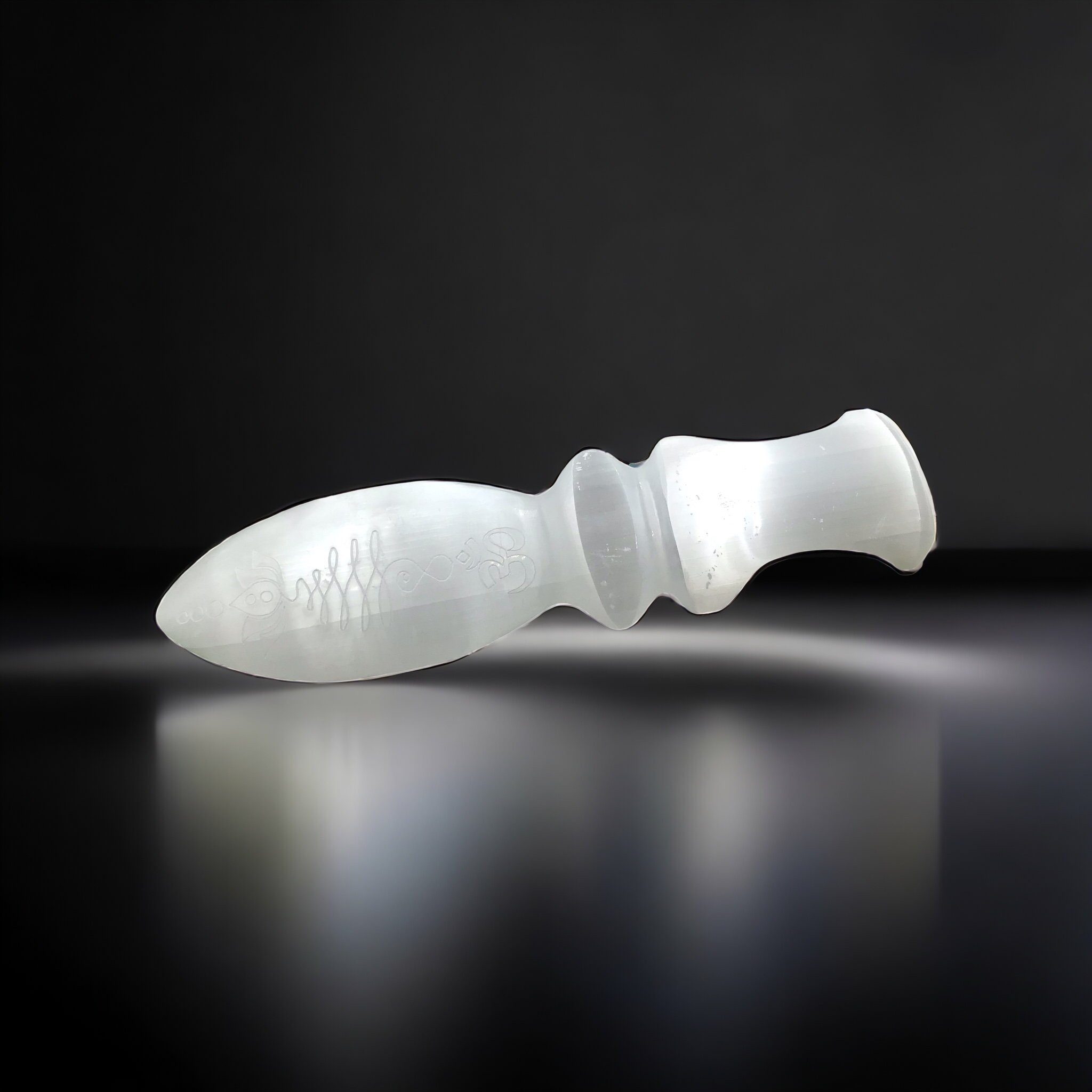 Dekoobjekt Selenit Dolch mit OM Gravur 20x5x2cm ca. 280 Gramm