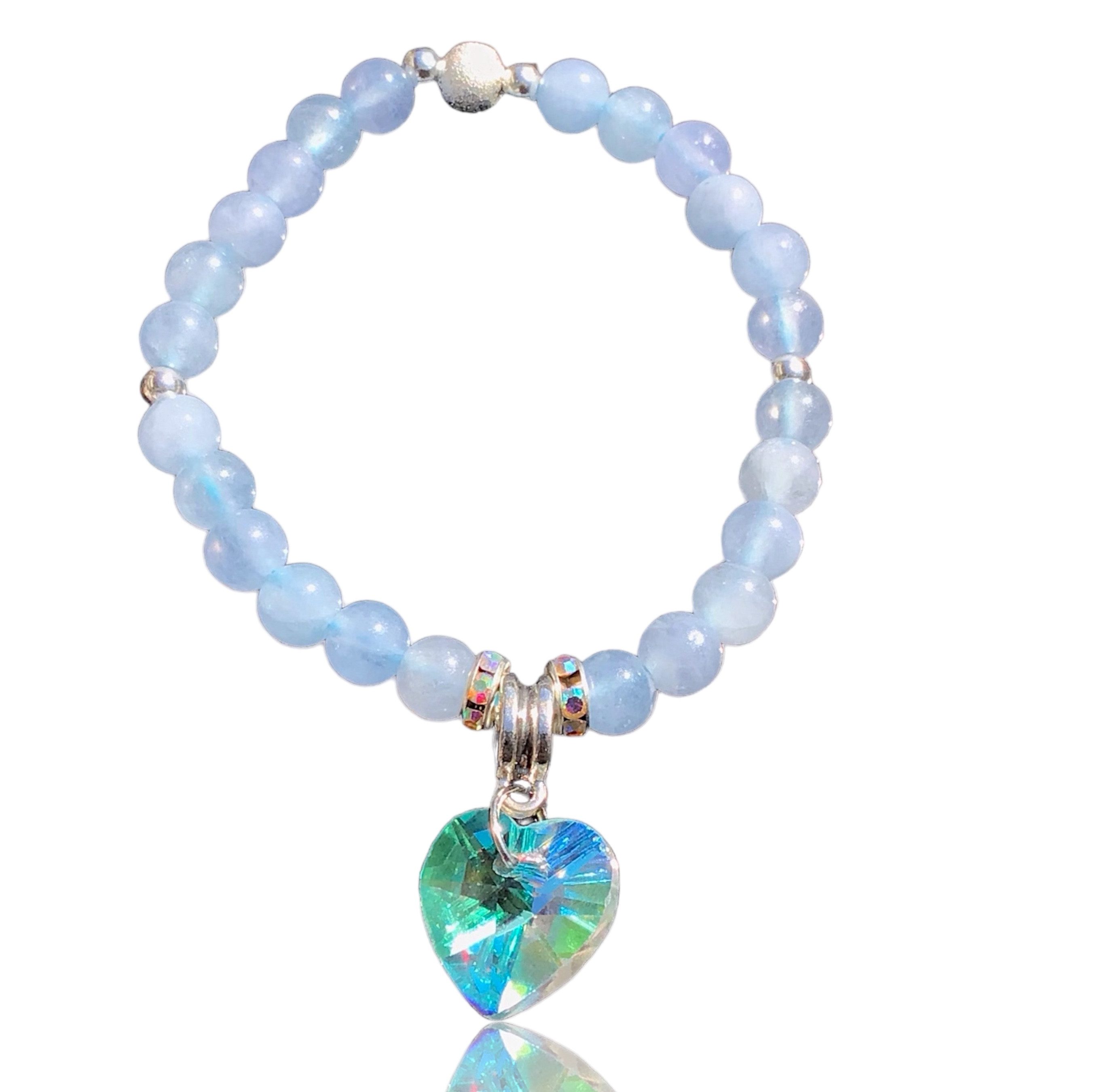 Entzückendes Aquamarin Armband mit polierten Perlen, Angel-Aura Herz und 925 Silberperlen.