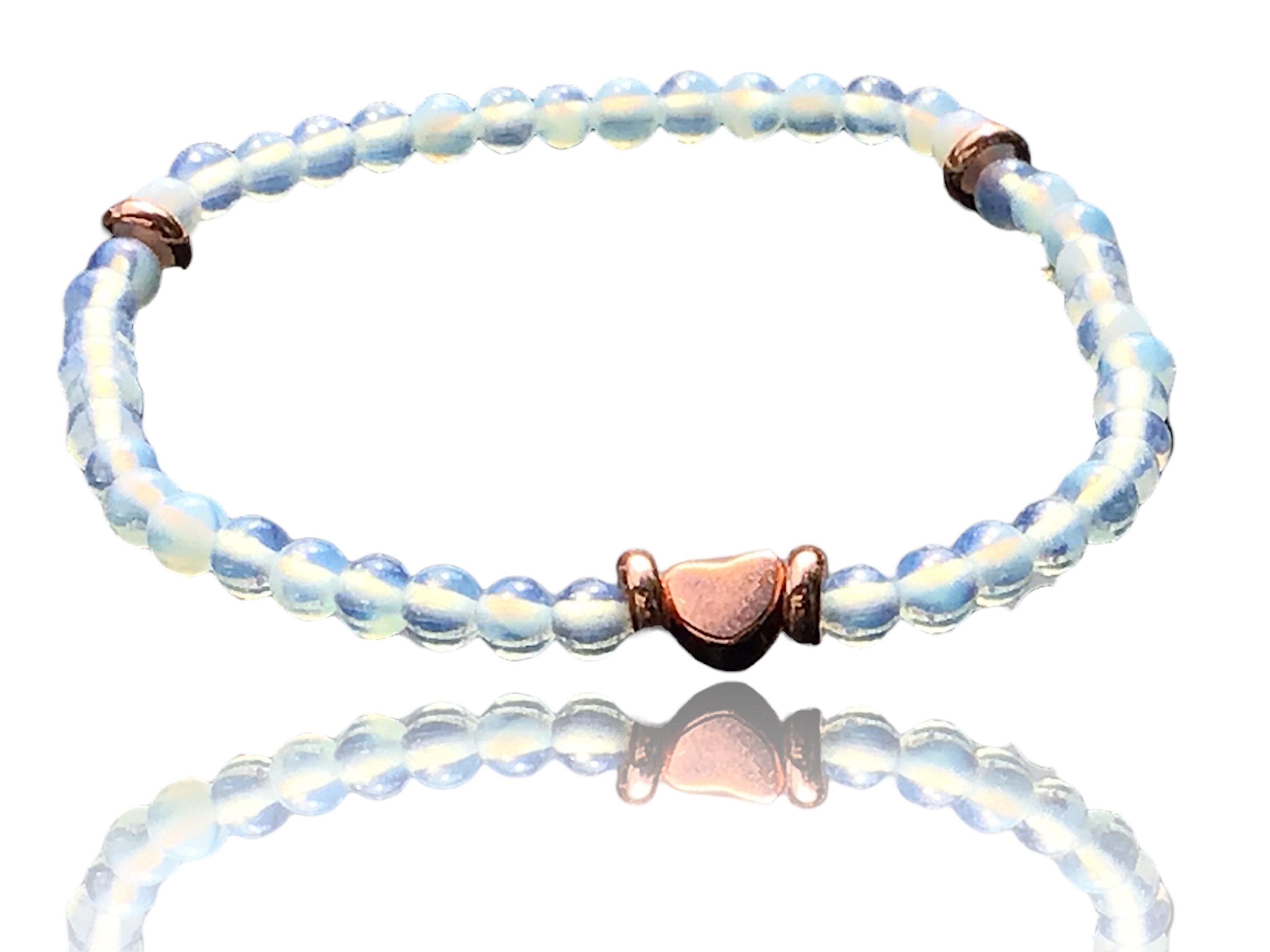 Elegantes Perlenarmband mit Opalglas und 14k rosevergoldeten Trennern und Herzchen