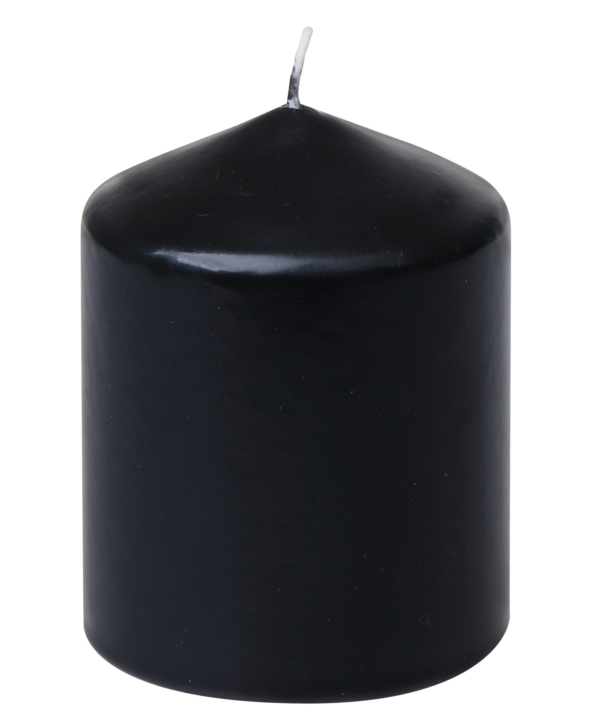 Stumpenkerzenn in Schwarz (100/77 mm) von Steinhart Kerzen, hergestellt in Deutschland in geprüfter RAL-Kerzengüte-Qualität. Die farblich glatten, getauchten Kerzen sind im 4er-Pack erhältlich und bieten eine Brenndauer von 38 Stunden