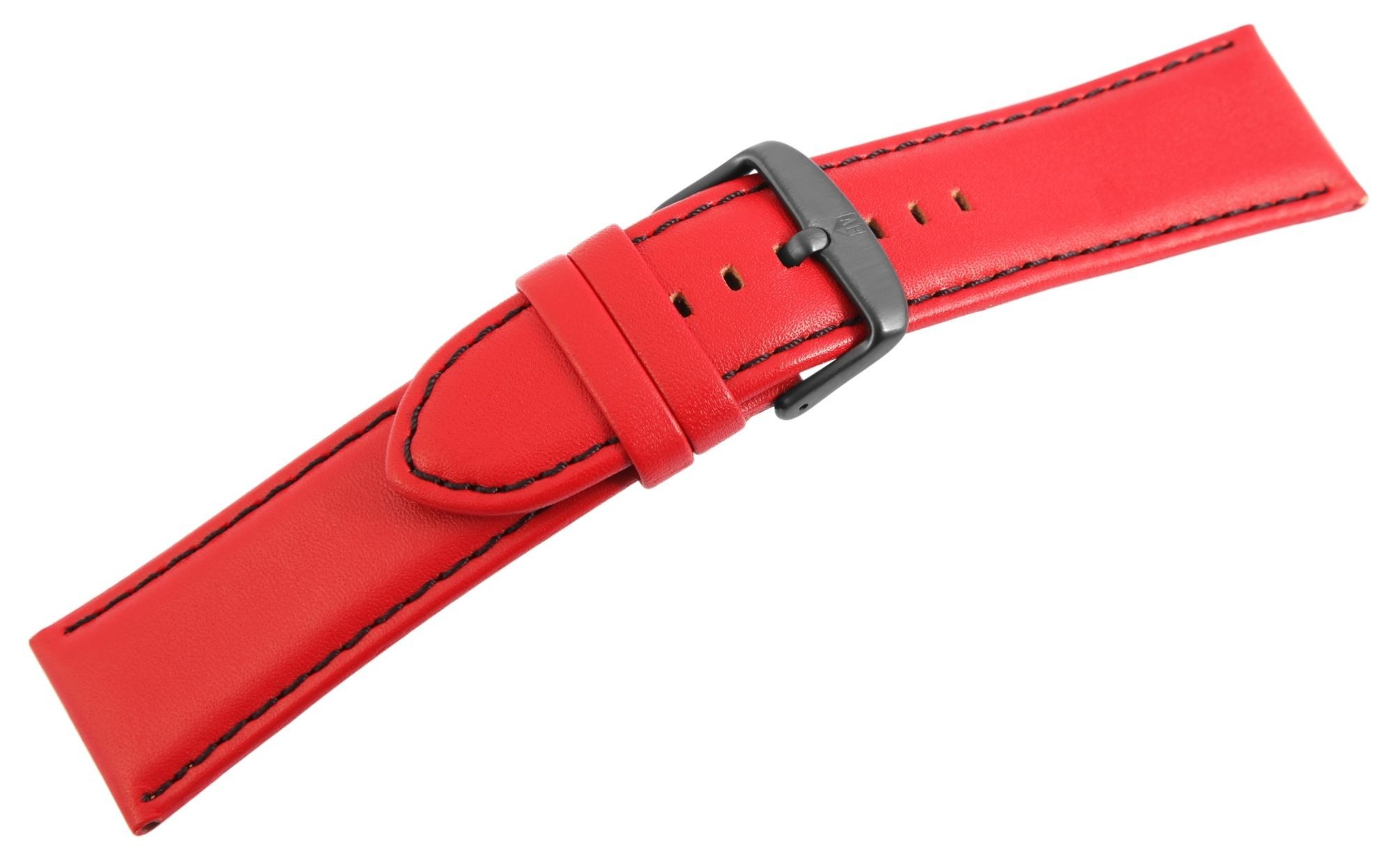 Uhrenarmband 8000150 Echtleder-Uhrenarmband, rot, schwarze Naht, 26 mm