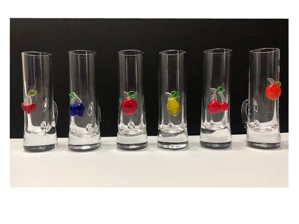 Diese schönen, in Österreich produzierten Wodkagläser oder Schnapsgläser sorgen für einen Hauch Landhausatmosphäre. Die hohen Gläser haben einen Henkel zur besseren Handhabung. Die Wodkagläser haben von aussen 6 verschiedene Früchte aus farbigem Glas. Sie haben eine Höhe von ca 10cm. Das Set ist auch toll als Geschenk. Es handelt sich um folgende Obstsorten Kirsche, Himbeere, Birne, Marille, Pflaume und Apfel.