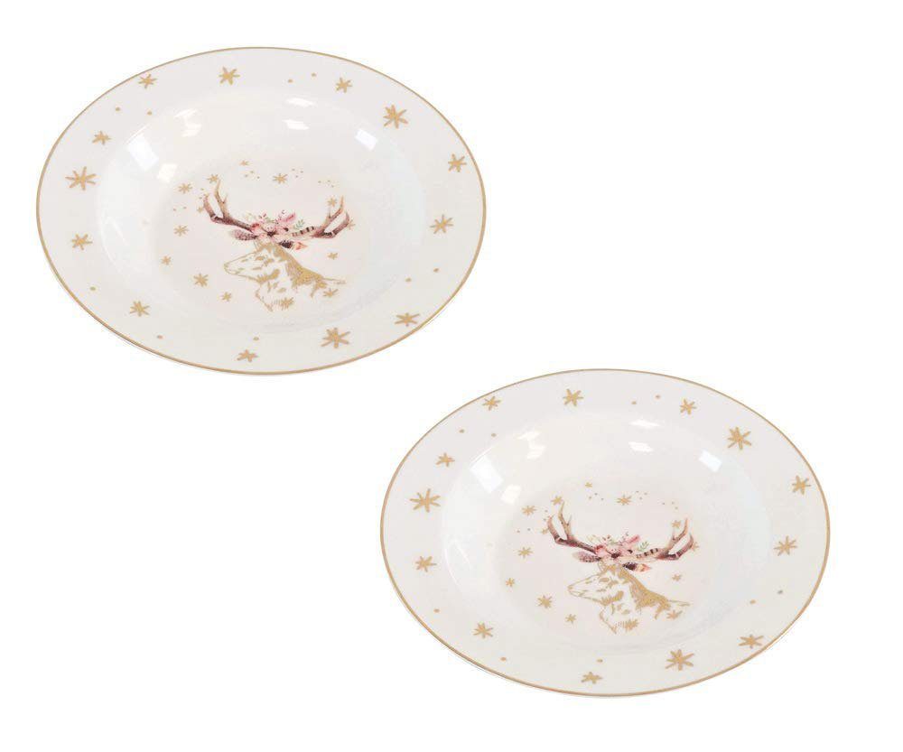 2 er Set Suppenteller Weihnachtsteller God Jul: Verzaubern Sie Ihr Heim zur Advents- und Weihnachtszeit! Dieser Teller zeigt einen Hirsch und ist edel und elegant. Man kann ihn auch schön zum Dekorieren verwenden.