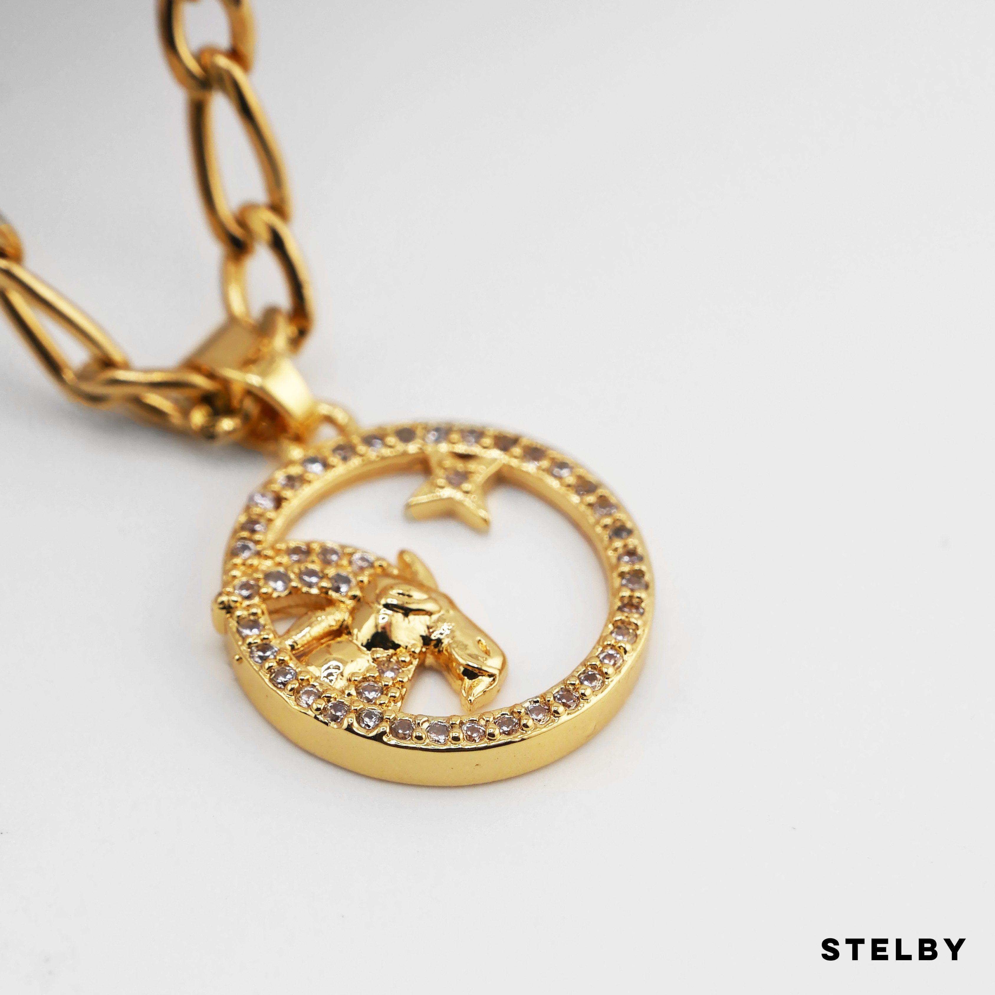 Entdecken Sie unsere exklusive Kollektion vergoldeter Halsketten, jeder Anhänger mit einem einzigartigen Sternzeichenmotiv für einen individuellen und persönlichen Ausdruck Ihrer kosmischen Verbindung. Jede Halskette in dieser Kollektion besteht aus hochwertigem Messing, das mit einer edlen Goldschicht überzogen ist, um einen strahlenden Glanz zu verleihen.