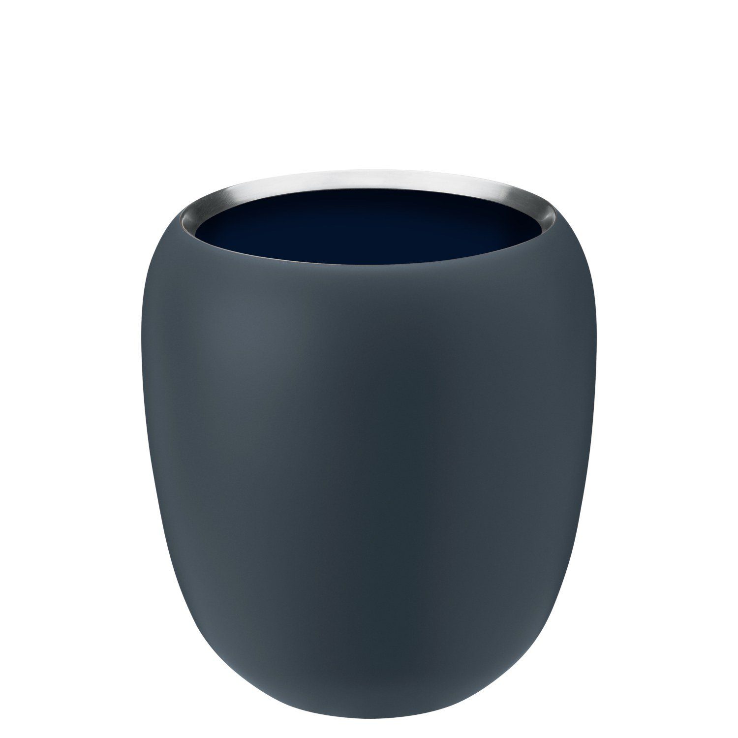 Die Serie Ora wurde vom italienischen Designerduo Daniel Debiasi und Federico Sandri entworfen. Die verschieden großen Vasen der Serie sollen nicht nur praktische Begleiter im Alltag, sondern auch skulpturale Designobjekte darstellen, die ein Leben lang begleiten. Gekennzeichnet wird die Serie durch den Kontrast zwischen dem funktionellen Edelstahl und den weichen, organischen Formen der Vasen. Die Außenseite der Ora Vase Klein Mitternachtsblau ist in der Farbe Dusty Blue matt beschichtet, auf der mitternachtsblauen, glänzenden Innenseite entstehen raffinierte Lichtreflexe. Die Vase ist 17 cm hoch und hat einen Durchmesser von 15,6 cm. Sie sollte nur von Hand mit lauwarmen Wasser und einem milden Spülmittel gereinigt werden.