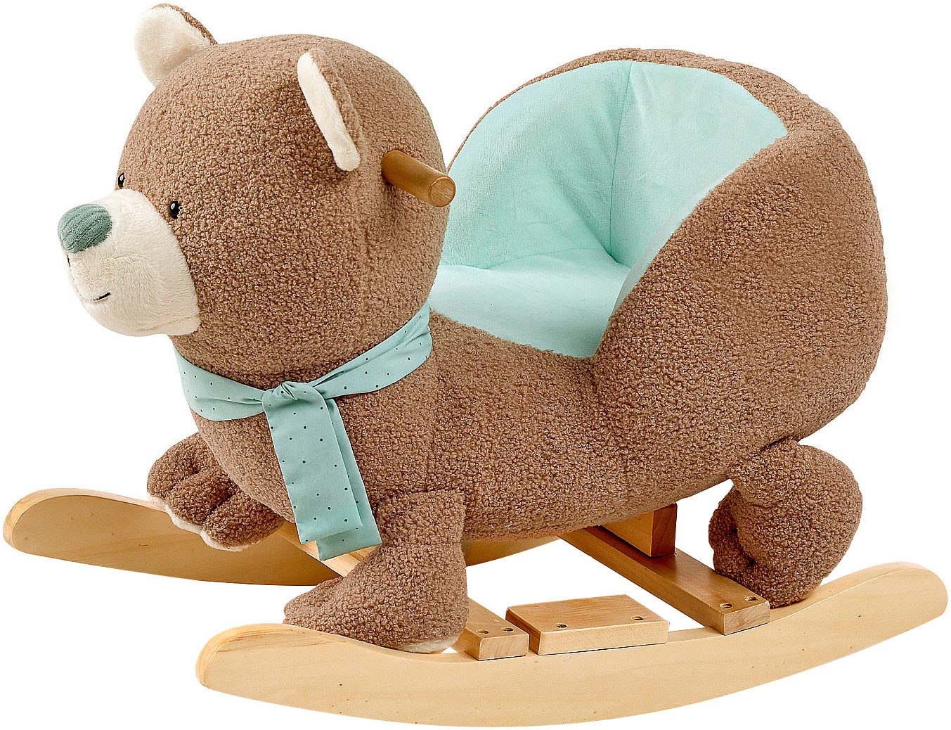 Ausstattung | Griffe aus Holz buntes Halstuch große, flauschige Ohren weich gepolsterte Sitzfläche |