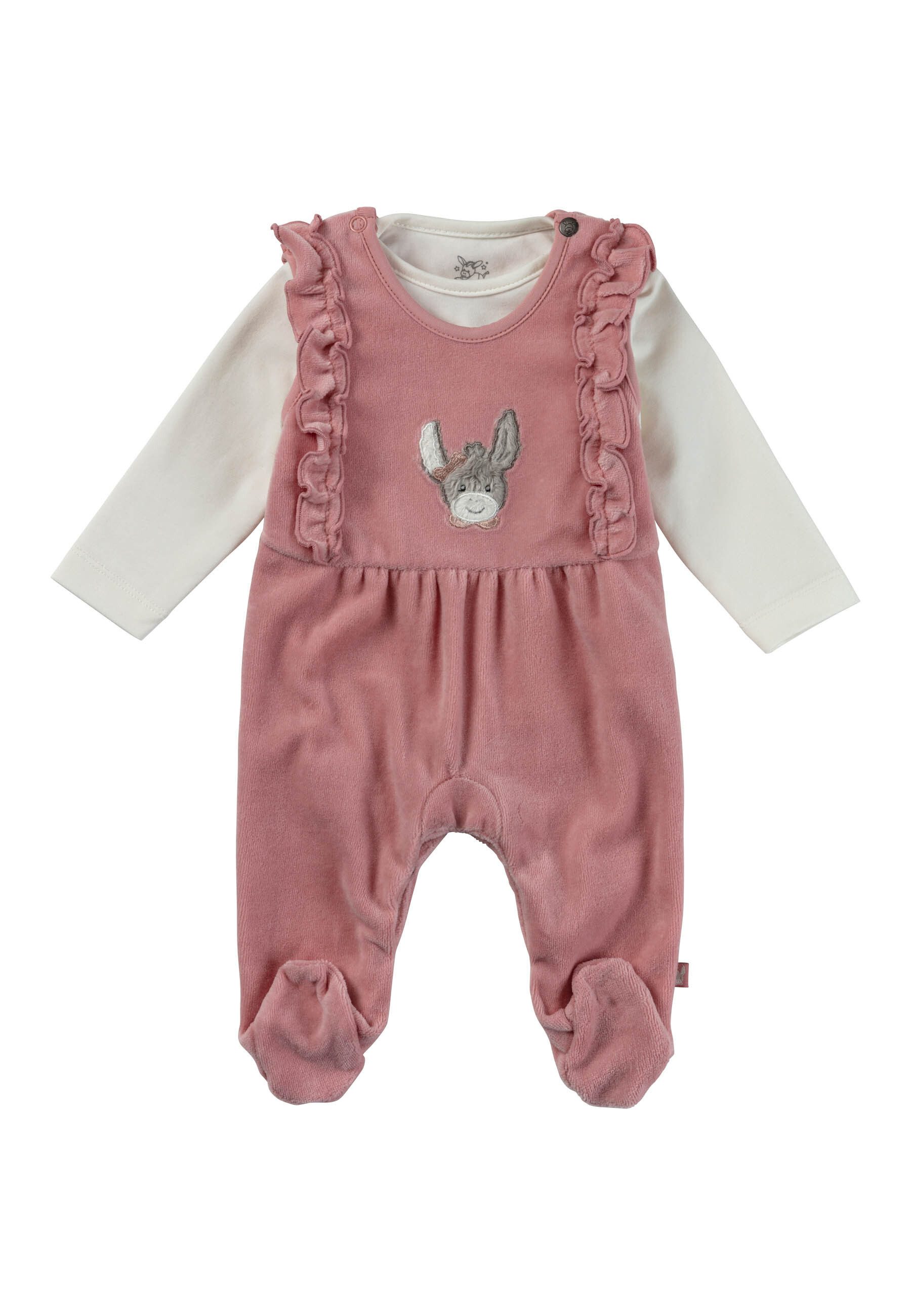 Applikationen | Strampler: unifarben, Volants und Applikation Esel Emmi Girl, Shirt: unifarben |