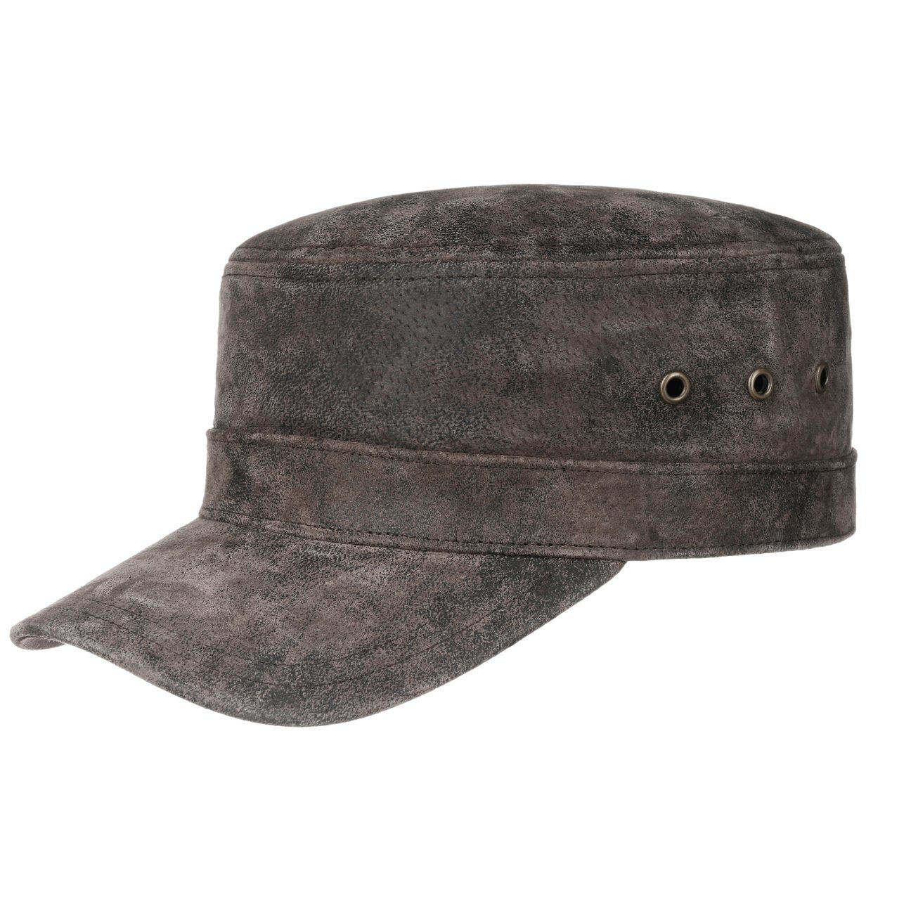 Reines Schweinsleder und ein leichtes Baumwollfutter verleihen der Armycap von Stetson nicht nur strapazierfähige und robuste, sondern auch überaus komfortable Eigenschaften. In Metall eingefasste Luftösen und die größenverstellbare Schnalle machen die lederne Schirmmütze zu einem idealen Begleiter im Alltag und bei jeglichen Outdoor-Aktivitäten.