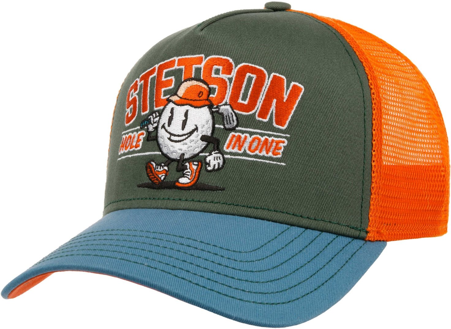 - Bunte Baseball-Cap im Vintage Trucker-Stil mit Netzeinsatz & "Stetson Hole In One"-Stickerei auf der Vorderseite