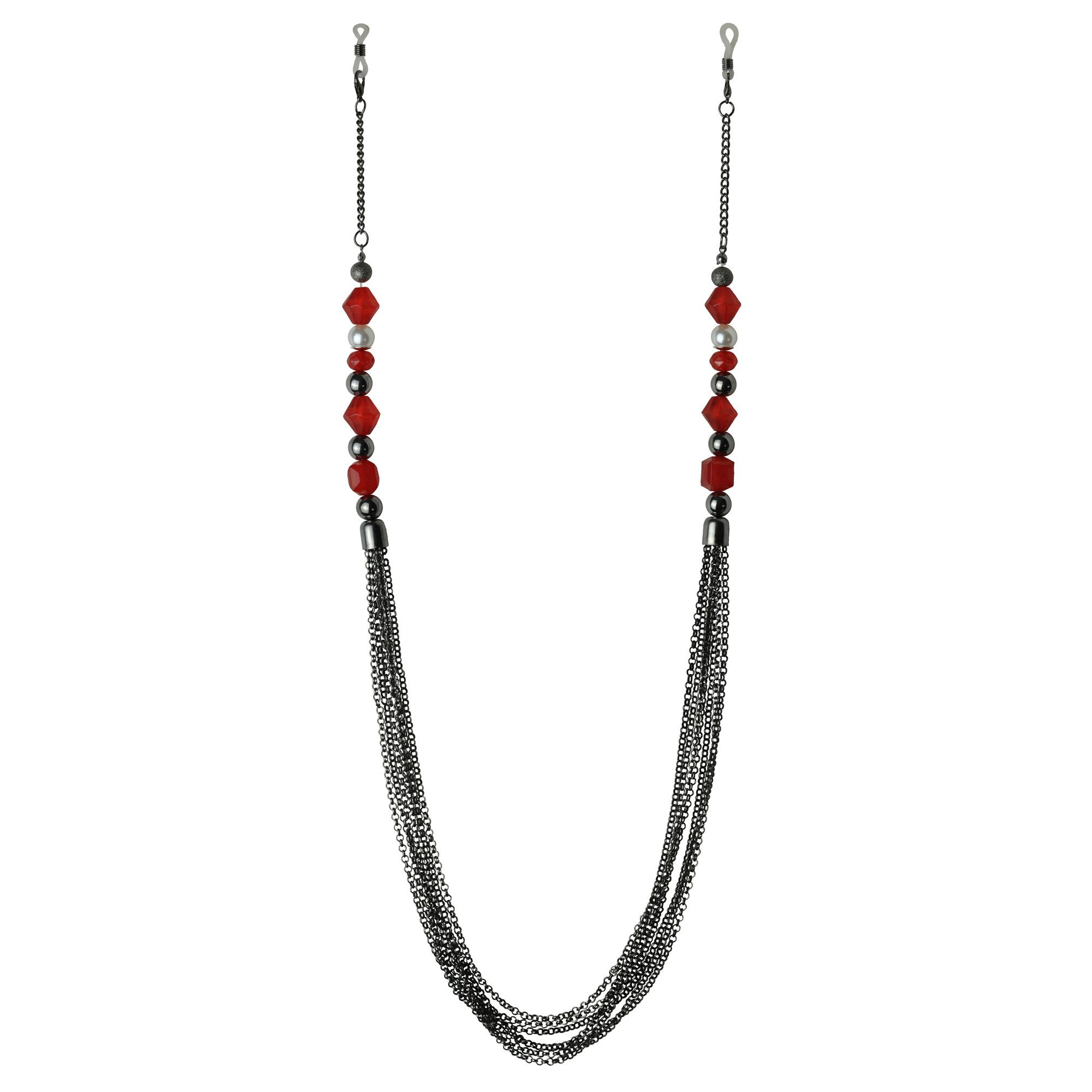 Brillenkette mit Schmuckperlen rot,weiß und anthrazit Mittelteil mehrreihig 76 cm lang