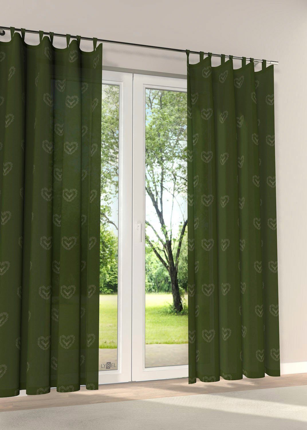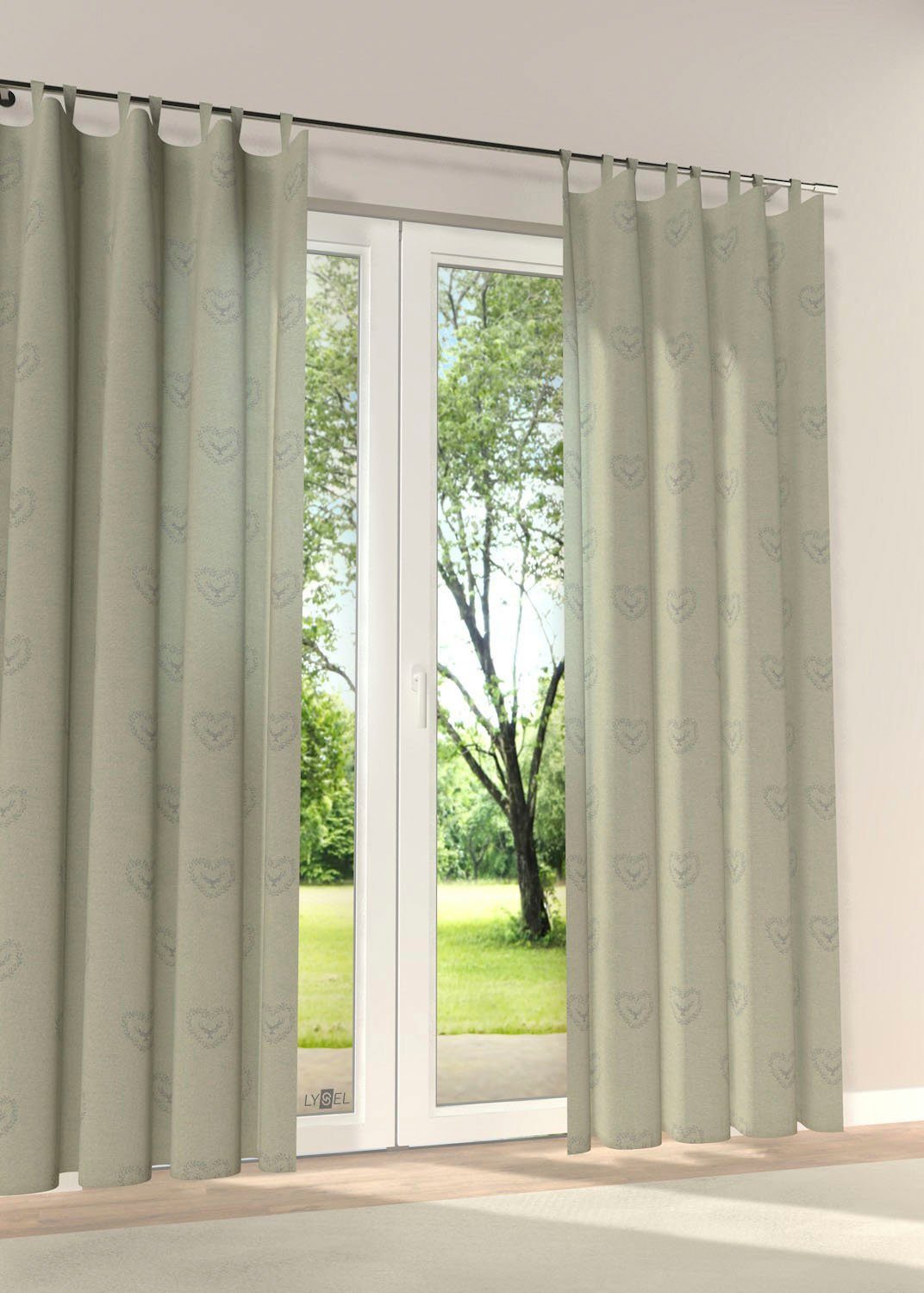 Hinweis Aufhängung | Aufhängung erfolgt mittels Schlaufen an der Gardinenstange. |