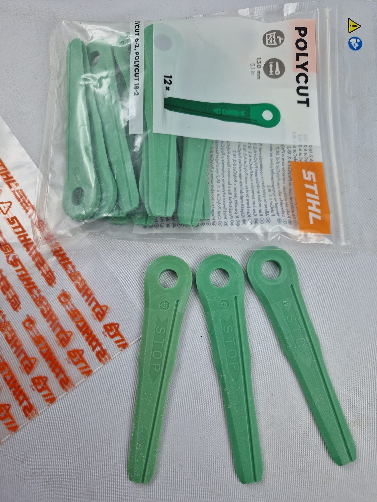 Dieser Satz grüne Kunststoffmesser für die Mähkopfe STIHL PolyCut 6-2 und STIHL PolyCut 18-2 besteht aus 12 hochwertigen Schneidelementen. Wenn Sie häufig Ihre Motorsense einsetzen und dichtes Gras mit einem sauberen Schnittbild schneiden möchten, hilft Ihnen dieser Satz Messer aus Kunststoff dabei, durchgehend effizient zu arbeiten.