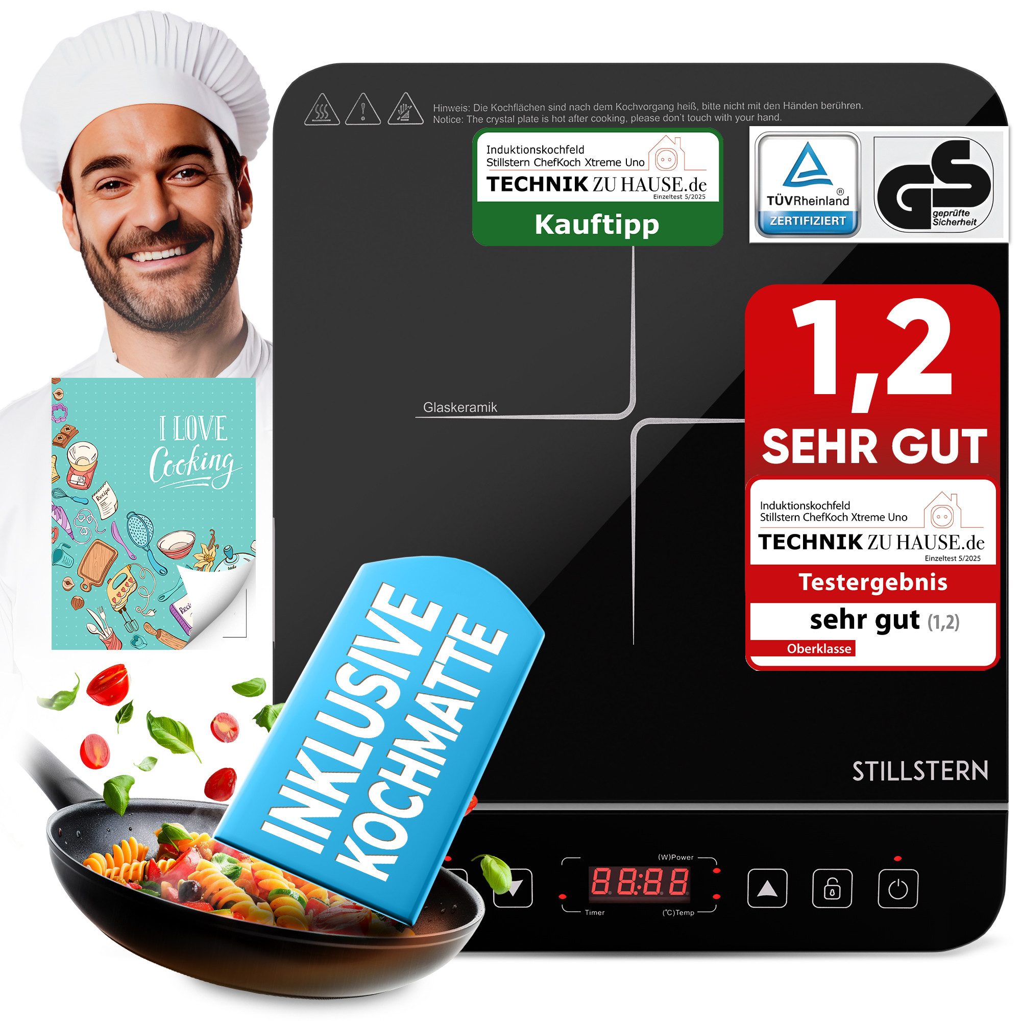 Das Stillstern Kochheld Doppel-Induktionskochfeld ist ein echtes Kraftpaket: Es bringt mit seinen zwei Kochfeldern satte 3600 Watt Leistung in die Küche und überzeugt durch sein schlichtes, elegantes & durchdachtes Design.
