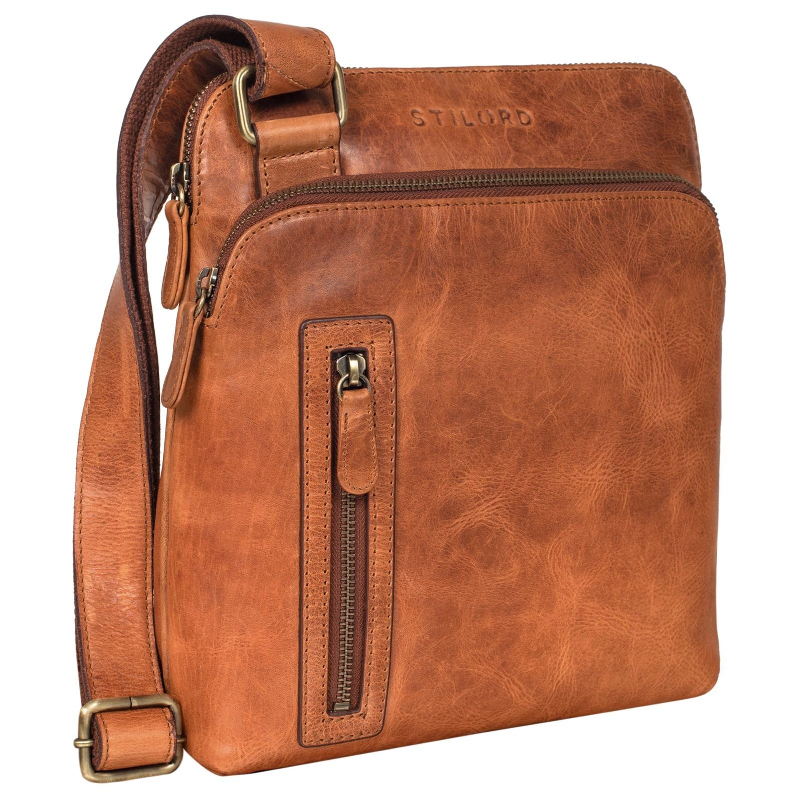 Dank der robusten Reißverschlüsse und dem gepolsterten Tabletfach bietet “Heike” den optimalen Schutz für Ihr Tablet, Handy und Ihre Wertsachen. Das moderne Design der Leder Umhängetasche, kombiniert mit dem charakteristischen Vintage Leder, zeichnet die Messenger Bag aus. Durch die praktischen Fächer und dem modischen Schultergurt mit Cross-Body Funktion erleben Sie mit der Vintage Umhängetasche maximalen Komfort.