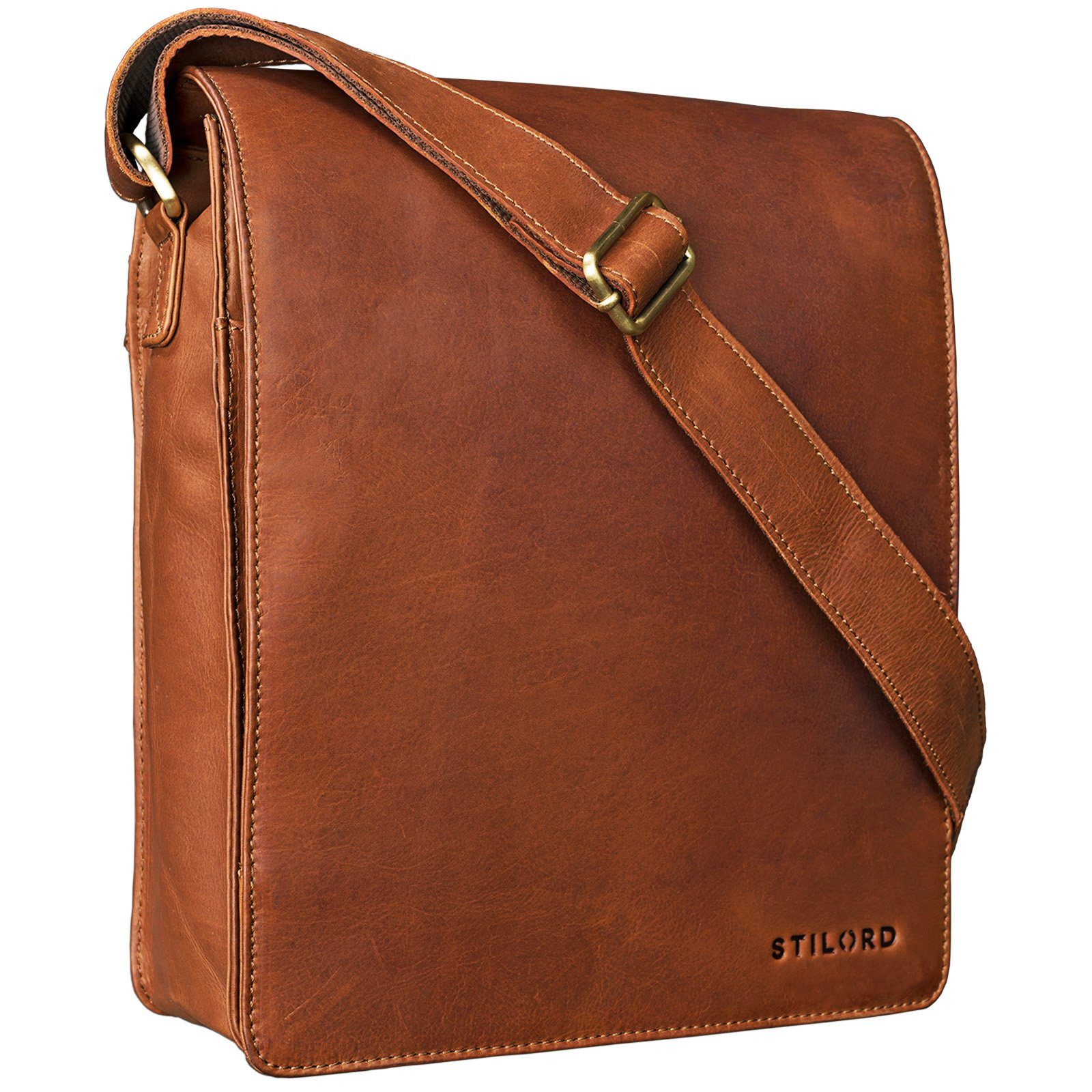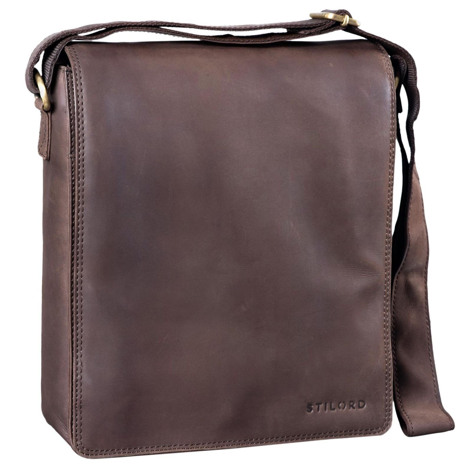 "Lars", STILORDS Vintage Leder Umhängetasche, hat die ideale Размер für den modernen, stilvollen Mann. Im Hochformat verstauen Sie Ihr MacBook, iPad / iPad Air, Chromebook, 13,3 Zoll Tablet und natürlich auch "analoge Datenträger" wie etwa DIN A4 Dokumente. Auch für Verpflegung und 1-Liter Wasserflaschen bleibt genügend Platz.