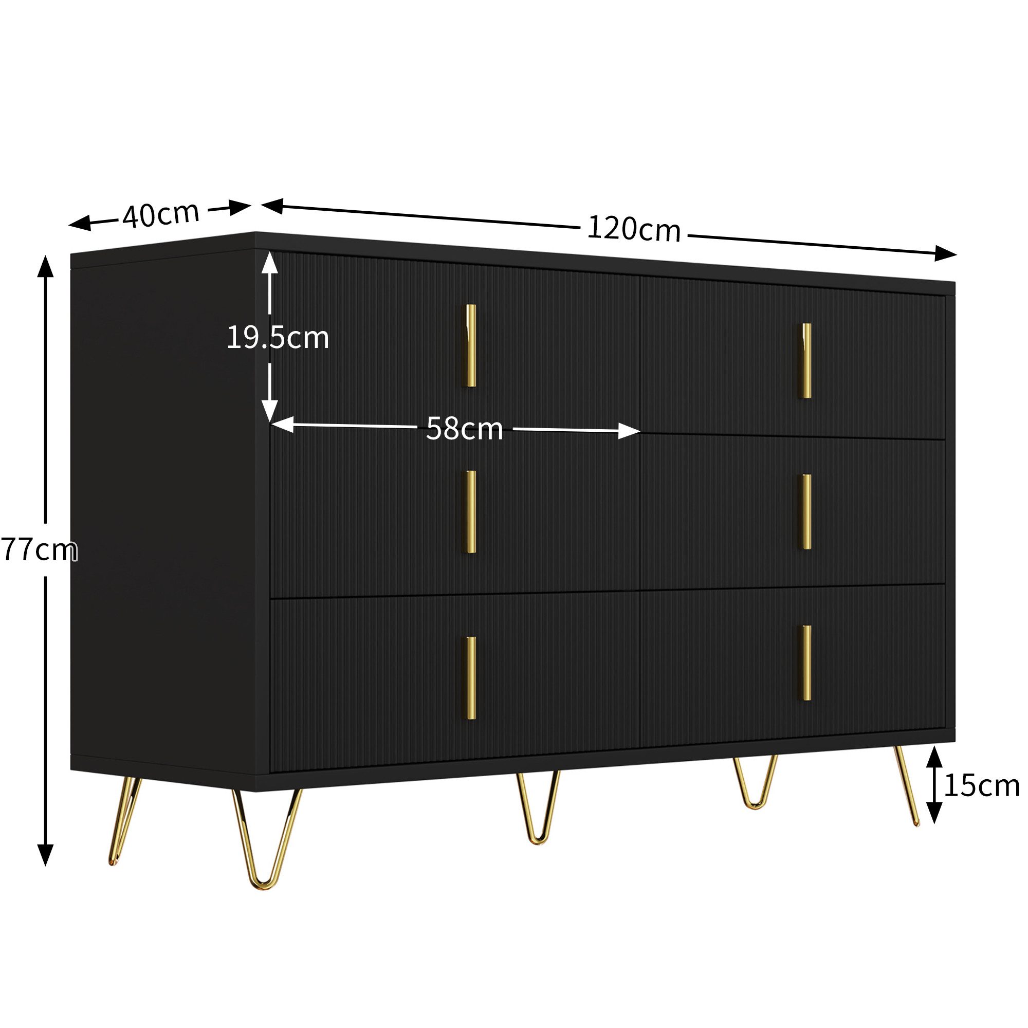 Sechs großzügige Schubladen bieten ausreichend Stauraum für Geschirr, Besteck, Dekoration oder Alltagsgegenstände. Всеs bleibt übersichtlich geordnet und jederzeit griffbereit, wodurch der Raum stets aufgeräumt und strukturiert erscheint.