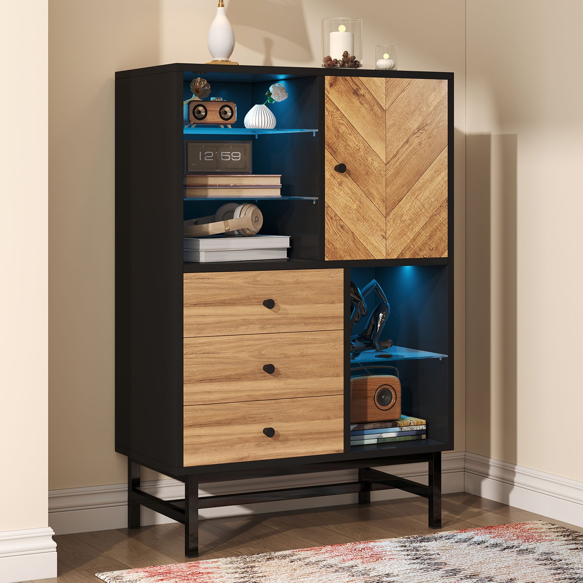 Die Vitrine ist mit einer 12-farbigen LED-Beleuchtung ausgestattet, die sich individuell anpassen lässt. Ob für einen gemütlichen Abend zu Hause, zur Präsentation von Dekorationsstücken oder zur stimmungsvollen Beleuchtung während Gästeempfängen – die LED-Leiste erzeugt stets ein elegantes Ambiente. Ihre ausgestellten Objekte werden durch das Licht noch stärker hervorgehoben, wodurch die Vitrine nicht nur funktional, sondern auch dekorativ zum Highlight im Raum wird.