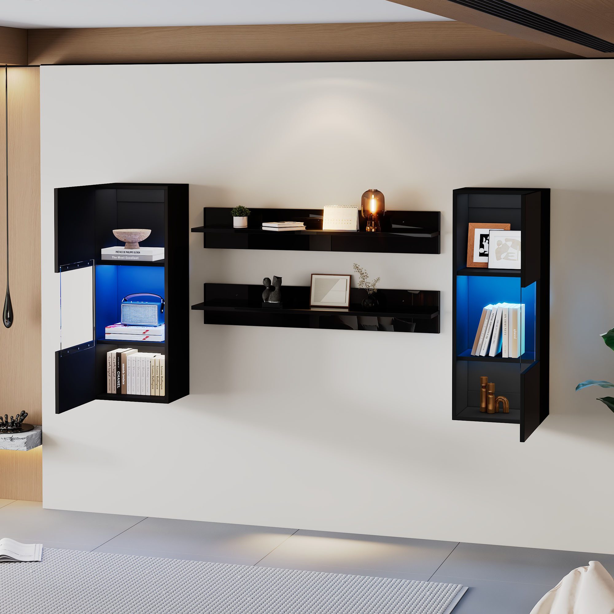 Dieses elegante Wandregal- und Wandschrank-Set kombiniert minimalistisches Design mit smarten Funktionen: Individuell gestaltbare Ablageflächen und Wandschränke schaffen eine praktische Aufbewahrung für Technik, Bücher und Dekoration. Die warmen LED-Leuchten lassen Ihre Lieblingsstücke in sanftem Licht erstrahlen und verwandeln Ihre Wohnzimmerwand in ein stilvolles, funktionales Highlight. Robust, platzsparend und smart – ideal für moderne Wohnräume.