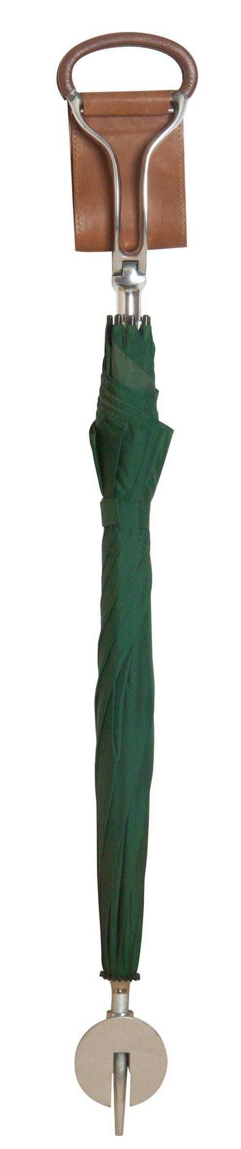 Am Dressur-Viereck ist er genauso zuhause wie auf dem Golfplatz, bei Regatten, Konzerten und im Park. Dieser Sitzstock-Regenschirm gehört in England zur feinen, englischen Lebensart. Jetzt können auch Sie den noblen Begleiter immer mit sich führen - und sind auf Spaziergängen und Open-Air-Events bestens gerüstet. An zwei kräftigen, lederbezogenen Griffen haben Sie den böenfesten Schirm sicher in der Hand. Die klassische Bespannung aus Nylon-Gewebe in der Trendfarbe British-green hält selbst heftige Schauer ab – und ist in Windeseile trocken. Entworfen in England. Elegant beim Flanieren. Eine sichere Stütze querfeldein. Und im Nu auch ein bequemer Sitz. Kein simpler Wanderstab, sondern ein kräftiger 96cm-Gehstock, der optimal stützt. Für die Rast drücken Sie einfach die 5cm-Metallspitze ins Erdreich, schieben die Griffe auseinander – und nehmen auf dem 29,5 x 9,5 cm großen Glattleder-Sitz Platz. Der klappbare Metall-Teller sorgt für festen Stand. Die seitlichen Griffe (9,5 x 4 cm B x H) dienen als komfortable Armstützen. Der Griff (mit Leder ummantelt) und Stab sind aus unverwüstlichem Stahl. Der 4 mm starke Ledersitz und die Ummantelung der Griffe sind aufwändig sattlermäßig versteppt. Misst 96 cm H, Sitzhöhe: 81 cm. Wiegt 990 g. Trägt 100 kg.