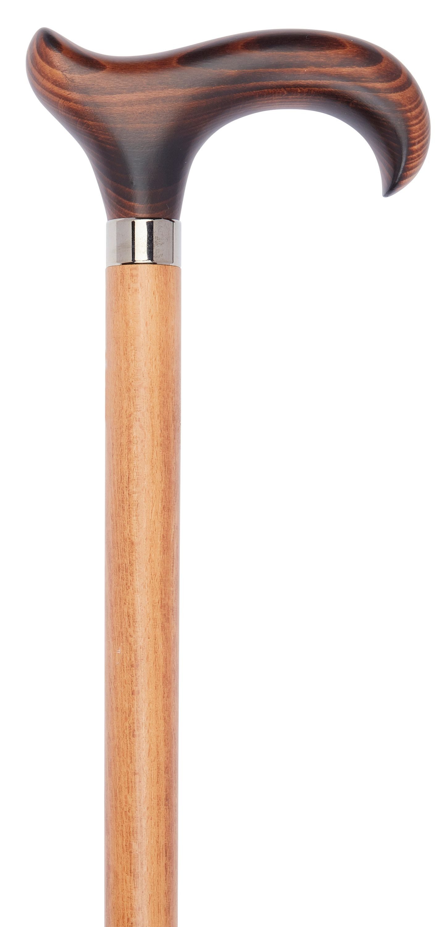 Ergonomischer und stabiler Derby-Griff, Buche dunkel geflammt mit extra breiter Handauflage, Stock aus massiver Buche hell geflammt. Zwischen Griff und Stock ist ein Stahlkern eingebaut, der einen extra starken Halt gibt. Der empfehlenswerte Stock für alle Übergrößen- belastbar bis 180 Kg und einer Gesamtlänge von 110 cm, die sich leicht auf ihre individuelle Длина anpassen lässt. Die Lieferung erfolgt inklusive Gummipuffer. (Ersatzpuffer 24mm nötig)