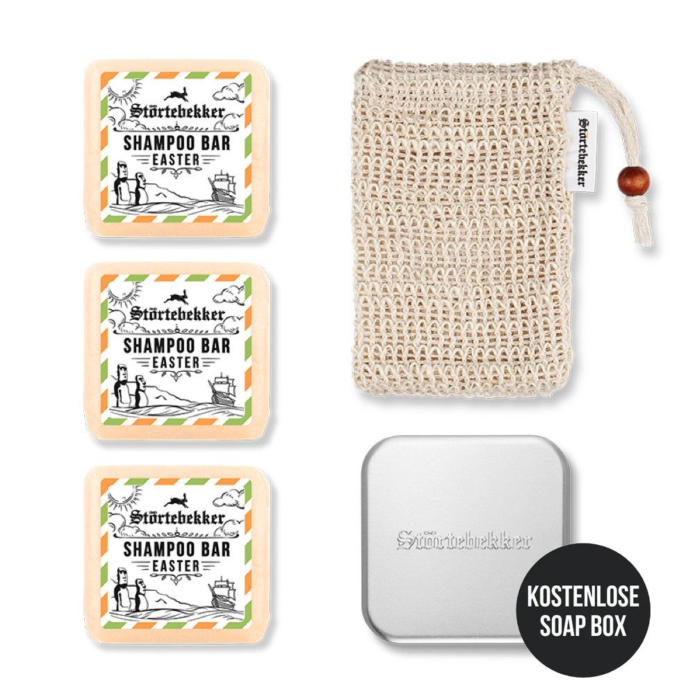 Lieferumfang | 3x festes Shampoo, Sisalsäckchen, Aluminium-Seifendose |