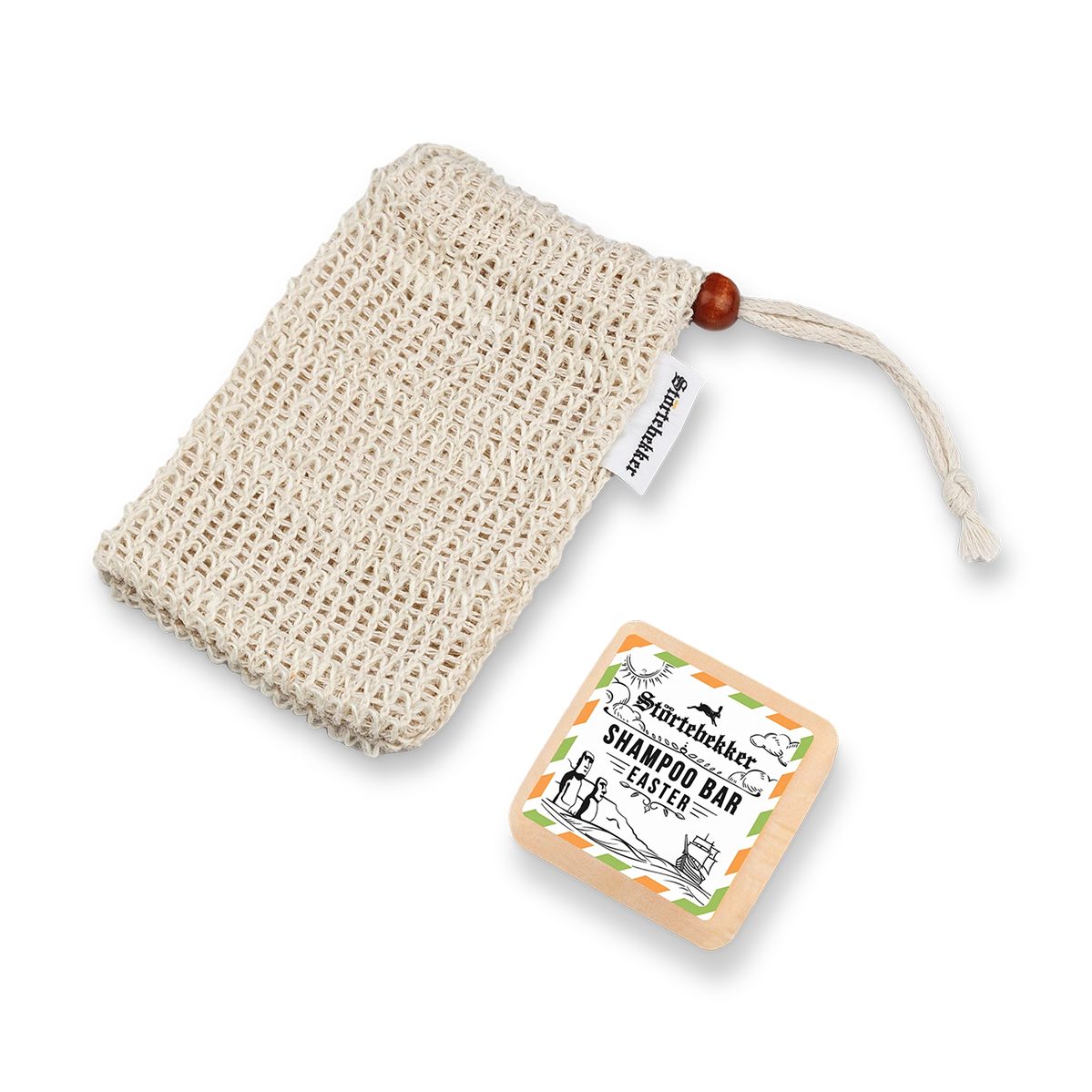 Lieferumfang | Festes Shampoo (100g) Soap Bag aus Sisalfasern |