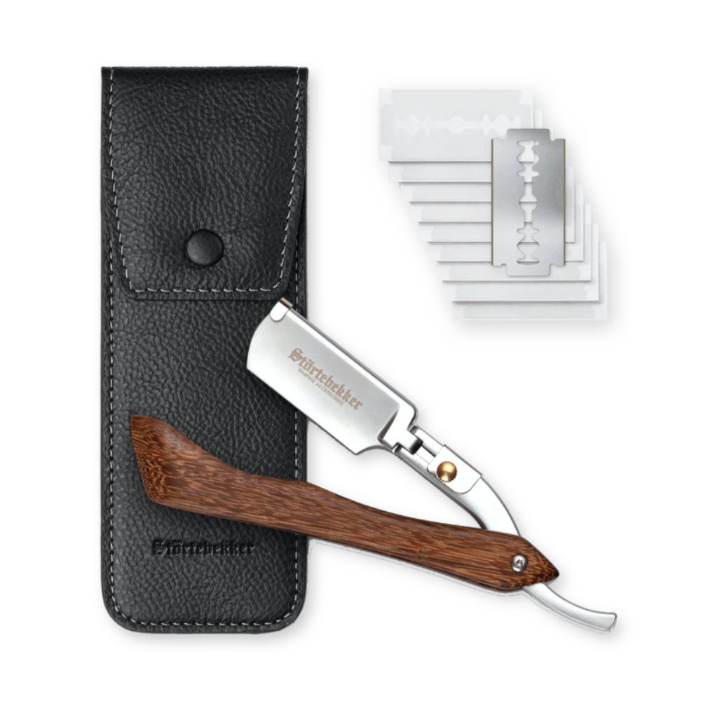 Das Störtebekker-Rasiermesser ist die perfekte Wahl für Fans der klassischen Rasur, die nach dem Rasierhobel den nächsten Schritt gehen wollen. Aber auch für Fortgeschrittene bietet das Rasiermesser eine hervorragende Funktionalität und Präzision dank des einfachen Öffnungsystems und des ergonomischen Holzgriffs aus Pangaholz.